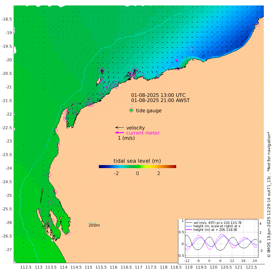 1cm/s 164T +12cm/s rms + 5cm/s -173T. NWSBAR 206m 1cm/s -156T +22cm/s rms + 10cm/s -148T. TAN100 109m 2cm/s -75T +11cm/s rms + 8cm/s -129T. PIL200 208m 3cm/s -86T +13cm/s rms + 7cm/s -137T. PIL100 105m 5cm/s -94T +12cm/s rms + 2cm/s -92T. PIL050 55m 1cm/s -159T +18cm/s rms + 4cm/s -149T. NRSNIN 61m 7cm/s -139T +6cm/s rms + 3cm/s 112T. NW Shelf M6 65m -20cm Withnell Point -22cm Denham -19cm Shark Bay (Inr Bn) -22cm Shark Bay -19cm Useless Loop 1cm Hamelin Pool -30cm Carnarvon -23cm Cape Cuvier -26cm Coral Bay -27cm Norwegian Bay -65cm Badjirrajirra -32cm Tantabiddi -48cm Point Murat -58cm Exmouth -62cm Learmonth -60cm Y Island -43cm North Muiron Island -51cm Roller -54cm Ashburton North -58cm Onslow (Beadon Creek) -55cm Thevenard Island -71cm Large Island -99cm North Sandy Island -77cm Barrow Island (Wapet Landing) -96cm Barrow Island (Tanker Mooring) -107cm Withnell Bay -63cm Trimouille Island -61cm North West Island -90cm Fortescue Road -105cm Steamboat Island -106cm Sholl Island -105cm Fairway Beacon -108cm Mawby Island -107cm Dampier (King Bay) -101cm Cape Legendre -113cm Hauy Island -132cm Port Walcott (Cape Lambert) -144cm Depuch Island -164cm Port Hedland -167cm Bedout Island -183cm Lagrange Bay