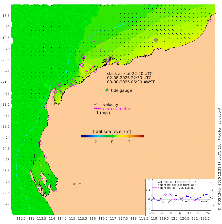 6cm/s -109T +12cm/s rms + 5cm/s -173T. NWSBAR 206m 4cm/s -137T +22cm/s rms + 10cm/s -148T. TAN100 109m 9cm/s -72T +11cm/s rms + 8cm/s -129T. PIL200 208m 14cm/s -45T +13cm/s rms + 7cm/s -137T. PIL100 105m 15cm/s -39T +12cm/s rms + 2cm/s -92T. PIL050 55m 3cm/s -125T +18cm/s rms + 4cm/s -149T. NRSNIN 61m 14cm/s -43T +6cm/s rms + 3cm/s 112T. NW Shelf M6 65m 31cm Withnell Point 41cm Denham 37cm Shark Bay (Inr Bn) 40cm Shark Bay 38cm Useless Loop -2cm Hamelin Pool 32cm Carnarvon 18cm Cape Cuvier 18cm Coral Bay 21cm Norwegian Bay 42cm Badjirrajirra 18cm Tantabiddi 31cm Point Murat 38cm Exmouth 39cm Learmonth 32cm Y Island 23cm North Muiron Island 25cm Roller 27cm Ashburton North 30cm Onslow (Beadon Creek) 27cm Thevenard Island 51cm Large Island 51cm North Sandy Island 37cm Barrow Island (Wapet Landing) 55cm Barrow Island (Tanker Mooring) 34cm Withnell Bay 32cm Trimouille Island 24cm North West Island 61cm Fortescue Road 25cm Steamboat Island 40cm Sholl Island 34cm Fairway Beacon 33cm Mawby Island 35cm Dampier (King Bay) 38cm Cape Legendre 39cm Hauy Island 43cm Port Walcott (Cape Lambert) 37cm Depuch Island 45cm Port Hedland 30cm Bedout Island 55cm Lagrange Bay