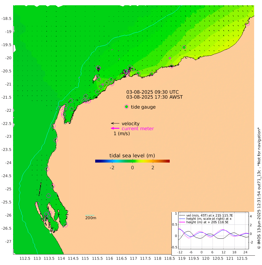 4cm/s -46T +12cm/s rms + 5cm/s -173T. NWSBAR 206m 3cm/s -152T +22cm/s rms + 10cm/s -148T. TAN100 109m 2cm/s -50T +11cm/s rms + 8cm/s -129T. PIL200 208m 4cm/s -51T +13cm/s rms + 7cm/s -137T. PIL100 105m 6cm/s -48T +12cm/s rms + 2cm/s -92T. PIL050 55m 3cm/s -138T +18cm/s rms + 4cm/s -149T. NRSNIN 61m 4cm/s -33T +6cm/s rms + 3cm/s 112T. NW Shelf M6 65m -19cm Withnell Point -25cm Denham -26cm Shark Bay (Inr Bn) -25cm Shark Bay -29cm Useless Loop -5cm Hamelin Pool -16cm Carnarvon -17cm Cape Cuvier -17cm Coral Bay -12cm Norwegian Bay 1cm Badjirrajirra -14cm Tantabiddi -6cm Point Murat -2cm Exmouth 2cm Learmonth -2cm Y Island -9cm North Muiron Island -5cm Roller -6cm Ashburton North -5cm Onslow (Beadon Creek) -6cm Thevenard Island 13cm Large Island 16cm North Sandy Island 3cm Barrow Island (Wapet Landing) 15cm Barrow Island (Tanker Mooring) 11cm Withnell Bay -1cm Trimouille Island -3cm North West Island 27cm Fortescue Road 10cm Steamboat Island 30cm Sholl Island 12cm Fairway Beacon 11cm Mawby Island 11cm Dampier (King Bay) 7cm Cape Legendre 24cm Hauy Island 21cm Port Walcott (Cape Lambert) 24cm Depuch Island 32cm Port Hedland 20cm Bedout Island 62cm Lagrange Bay