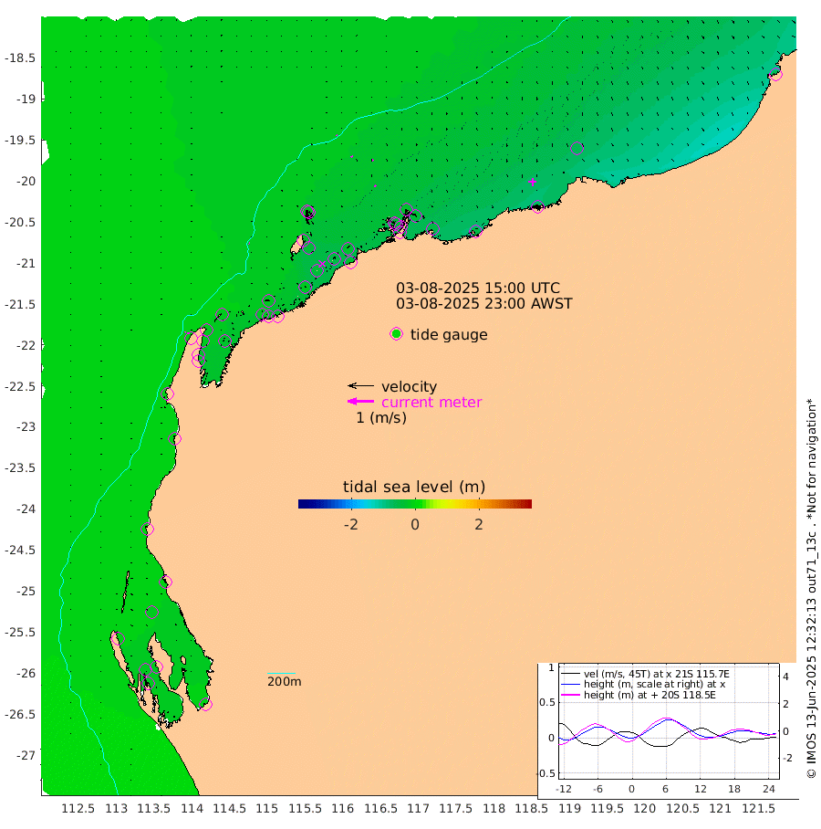 2cm/s 115T +12cm/s rms + 5cm/s -173T. NWSBAR 206m 3cm/s 41T +22cm/s rms + 10cm/s -148T. TAN100 109m 2cm/s 119T +11cm/s rms + 8cm/s -129T. PIL200 208m 5cm/s 137T +13cm/s rms + 7cm/s -137T. PIL100 105m 6cm/s 143T +12cm/s rms + 2cm/s -92T. PIL050 55m 4cm/s 45T +18cm/s rms + 4cm/s -149T. NRSNIN 61m 7cm/s 161T +6cm/s rms + 3cm/s 112T. NW Shelf M6 65m -7cm Withnell Point -17cm Denham -16cm Shark Bay (Inr Bn) -17cm Shark Bay -20cm Useless Loop -7cm Hamelin Pool -7cm Carnarvon 0cm Cape Cuvier -2cm Coral Bay -4cm Norwegian Bay -27cm Badjirrajirra -4cm Tantabiddi -16cm Point Murat -22cm Exmouth -22cm Learmonth -23cm Y Island -12cm North Muiron Island -17cm Roller -15cm Ashburton North -18cm Onslow (Beadon Creek) -16cm Thevenard Island -17cm Large Island -39cm North Sandy Island -27cm Barrow Island (Wapet Landing) -41cm Barrow Island (Tanker Mooring) -36cm Withnell Bay -16cm Trimouille Island -16cm North West Island -33cm Fortescue Road -31cm Steamboat Island -46cm Sholl Island -36cm Fairway Beacon -37cm Mawby Island -36cm Dampier (King Bay) -33cm Cape Legendre -41cm Hauy Island -48cm Port Walcott (Cape Lambert) -46cm Depuch Island -60cm Port Hedland -61cm Bedout Island -63cm Lagrange Bay