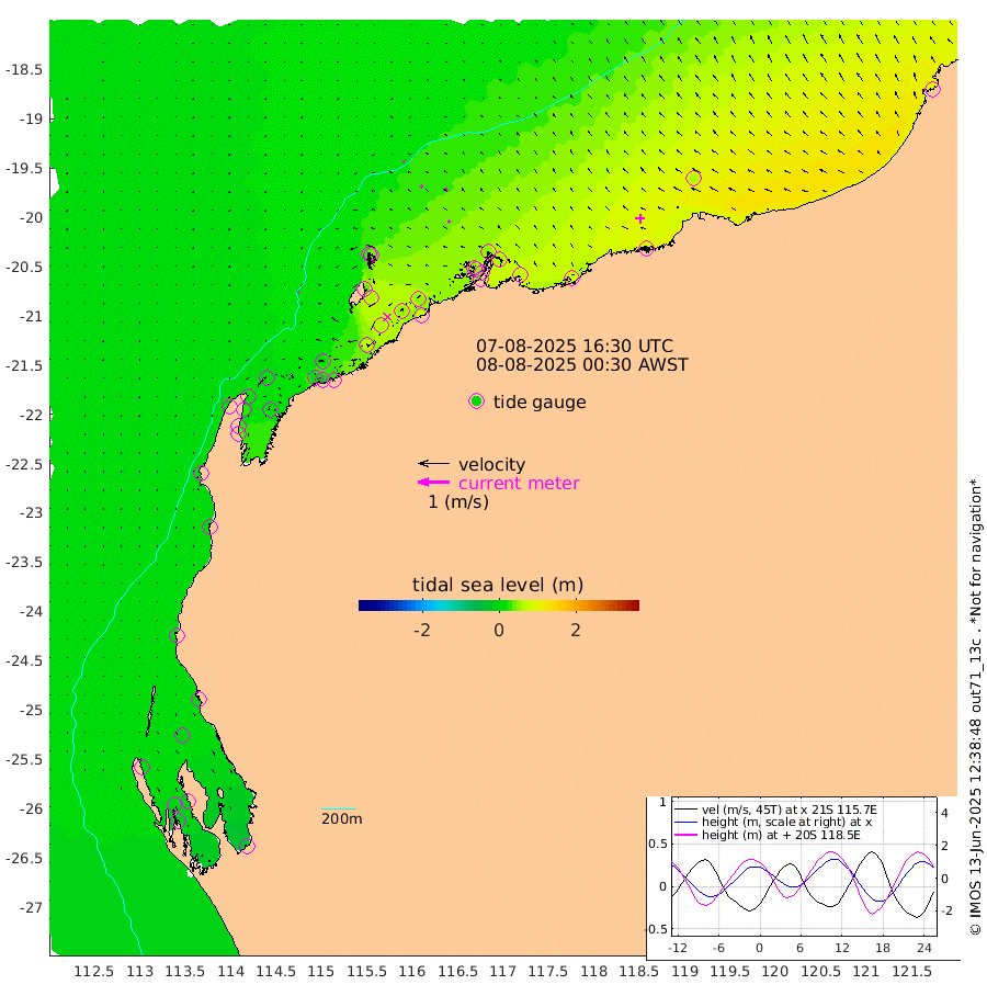 4cm/s -111T +12cm/s rms + 5cm/s -173T. NWSBAR 206m 1cm/s 29T +22cm/s rms + 10cm/s -148T. TAN100 109m 5cm/s -78T +11cm/s rms + 8cm/s -129T. PIL200 208m 7cm/s -49T +13cm/s rms + 7cm/s -137T. PIL100 105m 8cm/s -40T +12cm/s rms + 2cm/s -92T. PIL050 55m 1cm/s 17T +18cm/s rms + 4cm/s -149T. NRSNIN 61m 12cm/s -41T +6cm/s rms + 3cm/s 112T. NW Shelf M6 65m 3cm Withnell Point -6cm Denham -10cm Shark Bay (Inr Bn) -9cm Shark Bay -19cm Useless Loop -17cm Hamelin Pool 13cm Carnarvon 8cm Cape Cuvier 7cm Coral Bay 7cm Norwegian Bay 30cm Badjirrajirra 10cm Tantabiddi 20cm Point Murat 25cm Exmouth 36cm Learmonth 18cm Y Island 14cm North Muiron Island 16cm Roller 21cm Ashburton North 24cm Onslow (Beadon Creek) 21cm Thevenard Island 75cm Large Island 63cm North Sandy Island 36cm Barrow Island (Wapet Landing) 56cm Barrow Island (Tanker Mooring) 50cm Withnell Bay 37cm Trimouille Island 30cm North West Island 80cm Fortescue Road 52cm Steamboat Island 54cm Sholl Island 50cm Fairway Beacon 51cm Mawby Island 51cm Dampier (King Bay) 46cm Cape Legendre 61cm Hauy Island 68cm Port Walcott (Cape Lambert) 87cm Depuch Island 84cm Port Hedland 64cm Bedout Island 99cm Lagrange Bay