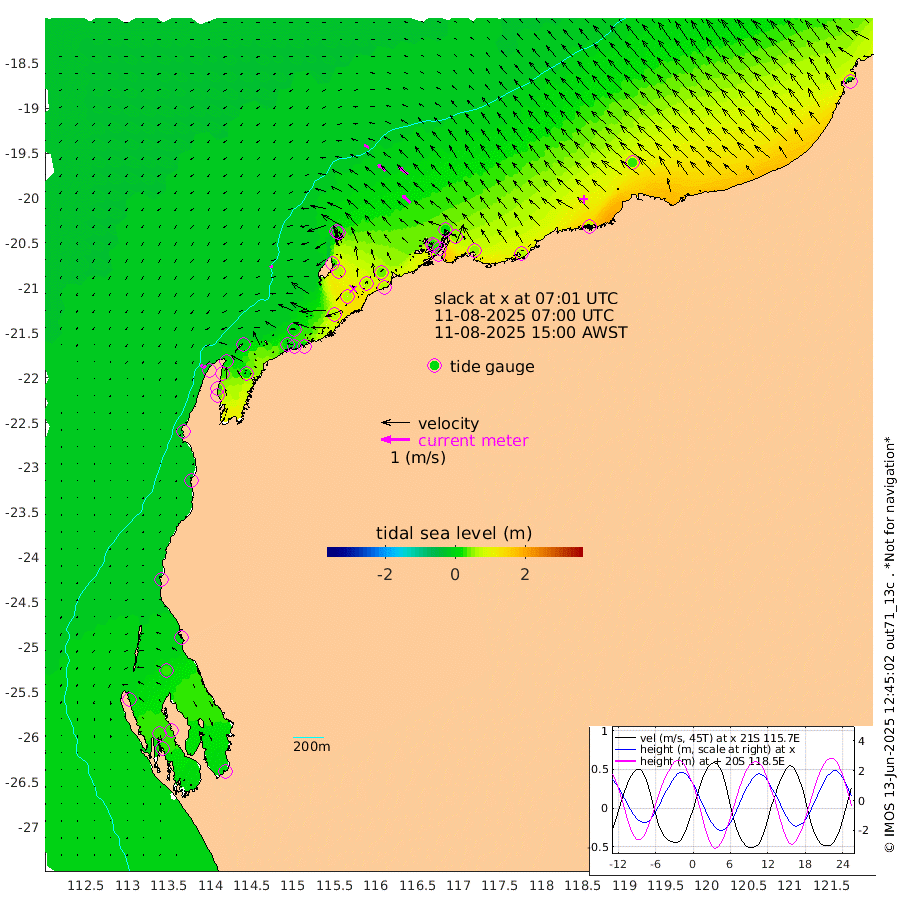 11cm/s -107T +12cm/s rms + 5cm/s -173T. NWSBAR 206m 13cm/s -138T +22cm/s rms + 10cm/s -148T. TAN100 109m 19cm/s -70T +11cm/s rms + 8cm/s -129T. PIL200 208m 32cm/s -52T +13cm/s rms + 7cm/s -137T. PIL100 105m 39cm/s -47T +12cm/s rms + 2cm/s -92T. PIL050 55m 13cm/s -132T +18cm/s rms + 4cm/s -149T. NRSNIN 61m 42cm/s -50T +6cm/s rms + 3cm/s 112T. NW Shelf M6 65m 14cm Withnell Point 33cm Denham 31cm Shark Bay (Inr Bn) 31cm Shark Bay 31cm Useless Loop 2cm Hamelin Pool 5cm Carnarvon -15cm Cape Cuvier -16cm Coral Bay -14cm Norwegian Bay 31cm Badjirrajirra -11cm Tantabiddi 13cm Point Murat 25cm Exmouth 34cm Learmonth 12cm Y Island -1cm North Muiron Island 2cm Roller 1cm Ashburton North 9cm Onslow (Beadon Creek) 3cm Thevenard Island 60cm Large Island 63cm North Sandy Island 24cm Barrow Island (Wapet Landing) 67cm Barrow Island (Tanker Mooring) 25cm Withnell Bay 26cm Trimouille Island 14cm North West Island 56cm Fortescue Road 34cm Steamboat Island 62cm Sholl Island 26cm Fairway Beacon 23cm Mawby Island 25cm Dampier (King Bay) 14cm Cape Legendre 50cm Hauy Island 47cm Port Walcott (Cape Lambert) 66cm Depuch Island 58cm Port Hedland 28cm Bedout Island -23cm Lagrange Bay