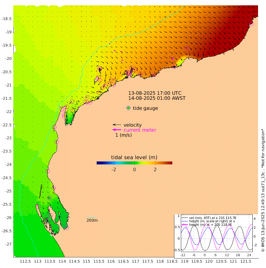 4cm/s 6T +12cm/s rms + 5cm/s -173T. NWSBAR 206m 7cm/s 41T +22cm/s rms + 10cm/s -148T. TAN100 109m 10cm/s 104T +11cm/s rms + 8cm/s -129T. PIL200 208m 17cm/s 114T +13cm/s rms + 7cm/s -137T. PIL100 105m 20cm/s 114T +12cm/s rms + 2cm/s -92T. PIL050 55m 7cm/s 45T +18cm/s rms + 4cm/s -149T. NRSNIN 61m 19cm/s 106T +6cm/s rms + 3cm/s 112T. NW Shelf M6 65m 26cm Withnell Point 8cm Denham 8cm Shark Bay (Inr Bn) 6cm Shark Bay -4cm Useless Loop -16cm Hamelin Pool 52cm Carnarvon 47cm Cape Cuvier 51cm Coral Bay 55cm Norwegian Bay 102cm Badjirrajirra 61cm Tantabiddi 79cm Point Murat 91cm Exmouth 105cm Learmonth 94cm Y Island 75cm North Muiron Island 87cm Roller 94cm Ashburton North 101cm Onslow (Beadon Creek) 97cm Thevenard Island 123cm Large Island 159cm North Sandy Island 130cm Barrow Island (Wapet Landing) 151cm Barrow Island (Tanker Mooring) 189cm Withnell Bay 132cm Trimouille Island 105cm North West Island 143cm Fortescue Road 183cm Steamboat Island 168cm Sholl Island 184cm Fairway Beacon 187cm Mawby Island 188cm Dampier (King Bay) 193cm Cape Legendre 196cm Hauy Island 229cm Port Walcott (Cape Lambert) 253cm Depuch Island 284cm Port Hedland 282cm Bedout Island 351cm Lagrange Bay