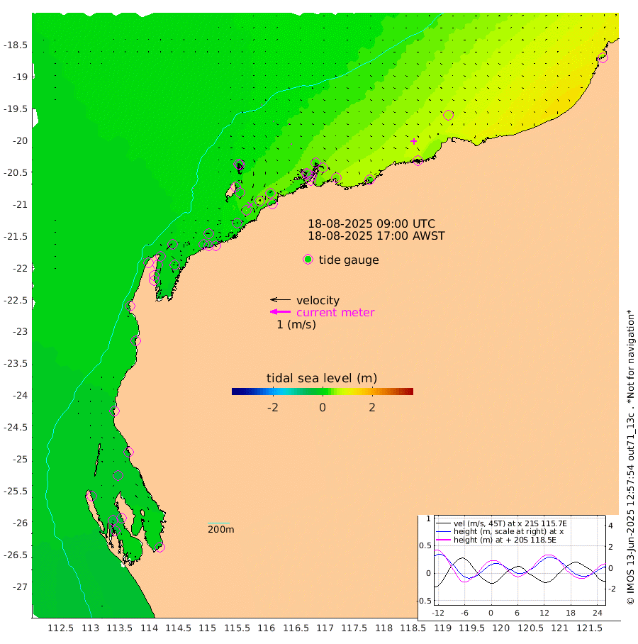 4cm/s -4T +12cm/s rms + 5cm/s -173T. NWSBAR 206m 1cm/s 176T +22cm/s rms + 10cm/s -148T. TAN100 109m 3cm/s 95T +11cm/s rms + 8cm/s -129T. PIL200 208m 3cm/s 121T +13cm/s rms + 7cm/s -137T. PIL100 105m 2cm/s 117T +12cm/s rms + 2cm/s -92T. PIL050 55m 1cm/s -177T +18cm/s rms + 4cm/s -149T. NRSNIN 61m 3cm/s 160T +6cm/s rms + 3cm/s 112T. NW Shelf M6 65m -26cm Withnell Point -39cm Denham -38cm Shark Bay (Inr Bn) -37cm Shark Bay -41cm Useless Loop -5cm Hamelin Pool -18cm Carnarvon -15cm Cape Cuvier -14cm Coral Bay -9cm Norwegian Bay 6cm Badjirrajirra -11cm Tantabiddi -3cm Point Murat 1cm Exmouth 6cm Learmonth 1cm Y Island -7cm North Muiron Island -1cm Roller 0cm Ashburton North 2cm Onslow (Beadon Creek) 1cm Thevenard Island 0cm Large Island 23cm North Sandy Island 13cm Barrow Island (Wapet Landing) 22cm Barrow Island (Tanker Mooring) 28cm Withnell Bay 15cm Trimouille Island -1cm North West Island 15cm Fortescue Road 22cm Steamboat Island 49cm Sholl Island 28cm Fairway Beacon 27cm Mawby Island 29cm Dampier (King Bay) 30cm Cape Legendre 38cm Hauy Island 42cm Port Walcott (Cape Lambert) 31cm Depuch Island 59cm Port Hedland 58cm Bedout Island 56cm Lagrange Bay
