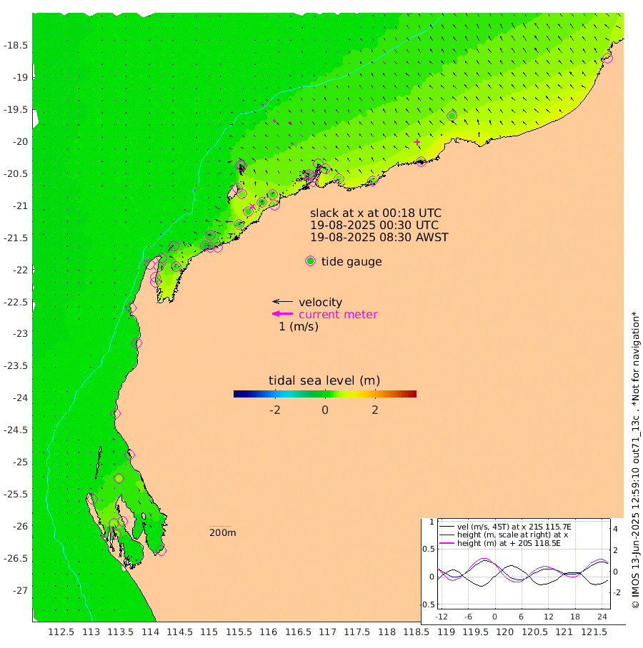 4cm/s -117T +12cm/s rms + 5cm/s -173T. NWSBAR 206m 4cm/s -134T +22cm/s rms + 10cm/s -148T. TAN100 109m 8cm/s -74T +11cm/s rms + 8cm/s -129T. PIL200 208m 12cm/s -45T +13cm/s rms + 7cm/s -137T. PIL100 105m 14cm/s -39T +12cm/s rms + 2cm/s -92T. PIL050 55m 4cm/s -126T +18cm/s rms + 4cm/s -149T. NRSNIN 61m 14cm/s -35T +6cm/s rms + 3cm/s 112T. NW Shelf M6 65m 33cm Withnell Point 48cm Denham 46cm Shark Bay (Inr Bn) 47cm Shark Bay 51cm Useless Loop 5cm Hamelin Pool 28cm Carnarvon 13cm Cape Cuvier 13cm Coral Bay 14cm Norwegian Bay 34cm Badjirrajirra 14cm Tantabiddi 25cm Point Murat 30cm Exmouth 29cm Learmonth 24cm Y Island 18cm North Muiron Island 18cm Roller 20cm Ashburton North 24cm Onslow (Beadon Creek) 21cm Thevenard Island 33cm Large Island 33cm North Sandy Island 29cm Barrow Island (Wapet Landing) 43cm Barrow Island (Tanker Mooring) 28cm Withnell Bay 21cm Trimouille Island 23cm North West Island 42cm Fortescue Road 28cm Steamboat Island 15cm Sholl Island 28cm Fairway Beacon 27cm Mawby Island 28cm Dampier (King Bay) 35cm Cape Legendre 34cm Hauy Island 34cm Port Walcott (Cape Lambert) 39cm Depuch Island 36cm Port Hedland 26cm Bedout Island 56cm Lagrange Bay