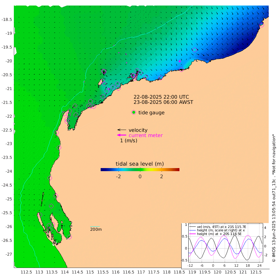 5cm/s 100T +12cm/s rms + 5cm/s -173T. NWSBAR 206m 3cm/s 38T +22cm/s rms + 10cm/s -148T. TAN100 109m 4cm/s 109T +11cm/s rms + 8cm/s -129T. PIL200 208m 8cm/s 142T +13cm/s rms + 7cm/s -137T. PIL100 105m 10cm/s 149T +12cm/s rms + 2cm/s -92T. PIL050 55m 4cm/s 47T +18cm/s rms + 4cm/s -149T. NRSNIN 61m 15cm/s 145T +6cm/s rms + 3cm/s 112T. NW Shelf M6 65m -2cm Withnell Point 0cm Denham -1cm Shark Bay (Inr Bn) 3cm Shark Bay 6cm Useless Loop 4cm Hamelin Pool -8cm Carnarvon 3cm Cape Cuvier 2cm Coral Bay 0cm Norwegian Bay -50cm Badjirrajirra -6cm Tantabiddi -29cm Point Murat -41cm Exmouth -59cm Learmonth -33cm Y Island -18cm North Muiron Island -26cm Roller -32cm Ashburton North -40cm Onslow (Beadon Creek) -34cm Thevenard Island -73cm Large Island -99cm North Sandy Island -65cm Barrow Island (Wapet Landing) -99cm Barrow Island (Tanker Mooring) -101cm Withnell Bay -66cm Trimouille Island -47cm North West Island -90cm Fortescue Road -99cm Steamboat Island -102cm Sholl Island -100cm Fairway Beacon -100cm Mawby Island -101cm Dampier (King Bay) -101cm Cape Legendre -120cm Hauy Island -136cm Port Walcott (Cape Lambert) -161cm Depuch Island -176cm Port Hedland -157cm Bedout Island -174cm Lagrange Bay