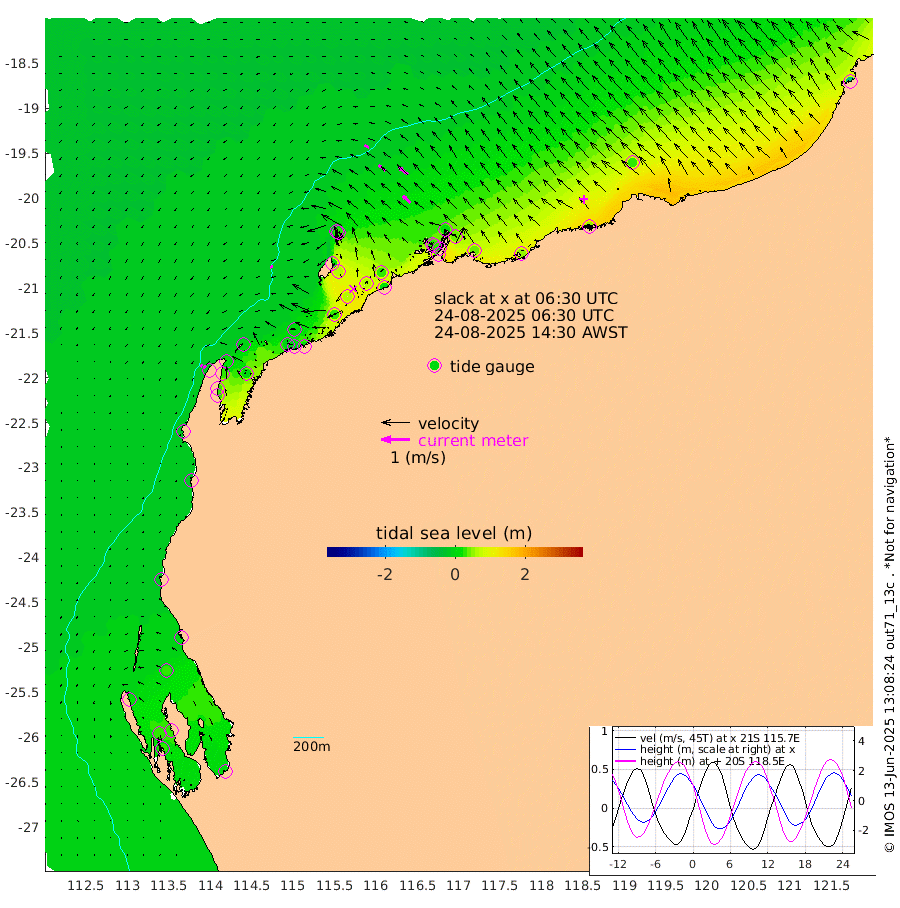 10cm/s -111T +12cm/s rms + 5cm/s -173T. NWSBAR 206m 11cm/s -138T +22cm/s rms + 10cm/s -148T. TAN100 109m 18cm/s -70T +11cm/s rms + 8cm/s -129T. PIL200 208m 31cm/s -52T +13cm/s rms + 7cm/s -137T. PIL100 105m 38cm/s -47T +12cm/s rms + 2cm/s -92T. PIL050 55m 12cm/s -133T +18cm/s rms + 4cm/s -149T. NRSNIN 61m 41cm/s -52T +6cm/s rms + 3cm/s 112T. NW Shelf M6 65m 13cm Withnell Point 28cm Denham 28cm Shark Bay (Inr Bn) 26cm Shark Bay 26cm Useless Loop 3cm Hamelin Pool 3cm Carnarvon -15cm Cape Cuvier -16cm Coral Bay -16cm Norwegian Bay 29cm Badjirrajirra -12cm Tantabiddi 11cm Point Murat 23cm Exmouth 34cm Learmonth 7cm Y Island -4cm North Muiron Island 0cm Roller -1cm Ashburton North 7cm Onslow (Beadon Creek) 1cm Thevenard Island 25cm Large Island 58cm North Sandy Island 22cm Barrow Island (Wapet Landing) 63cm Barrow Island (Tanker Mooring) 22cm Withnell Bay 27cm Trimouille Island 10cm North West Island 15cm Fortescue Road 30cm Steamboat Island 61cm Sholl Island 24cm Fairway Beacon 23cm Mawby Island 23cm Dampier (King Bay) 18cm Cape Legendre 44cm Hauy Island 43cm Port Walcott (Cape Lambert) 53cm Depuch Island 54cm Port Hedland 24cm Bedout Island -97cm Lagrange Bay