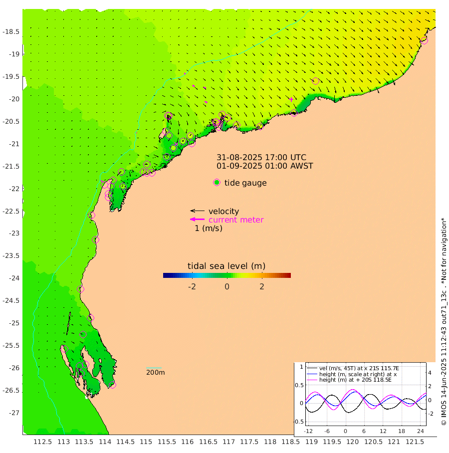 3cm/s 67T +12cm/s rms + 5cm/s -173T. NWSBAR 206m 7cm/s 38T +22cm/s rms + 10cm/s -148T. TAN100 109m 10cm/s 107T +11cm/s rms + 8cm/s -129T. PIL200 208m 17cm/s 124T +13cm/s rms + 7cm/s -137T. PIL100 105m 19cm/s 125T +12cm/s rms + 2cm/s -92T. PIL050 55m 7cm/s 46T +18cm/s rms + 4cm/s -149T. NRSNIN 61m 20cm/s 124T +6cm/s rms + 3cm/s 112T. NW Shelf M6 65m 23cm Withnell Point 10cm Denham 11cm Shark Bay (Inr Bn) 12cm Shark Bay 3cm Useless Loop -11cm Hamelin Pool 36cm Carnarvon 39cm Cape Cuvier 41cm Coral Bay 39cm Norwegian Bay 45cm Badjirrajirra 43cm Tantabiddi 43cm Point Murat 44cm Exmouth 45cm Learmonth 50cm Y Island 47cm North Muiron Island 52cm Roller 51cm Ashburton North 52cm Onslow (Beadon Creek) 53cm Thevenard Island 36cm Large Island 63cm North Sandy Island 58cm Barrow Island (Wapet Landing) 55cm Barrow Island (Tanker Mooring) 81cm Withnell Bay 63cm Trimouille Island 55cm North West Island 26cm Fortescue Road 87cm Steamboat Island 65cm Sholl Island 78cm Fairway Beacon 80cm Mawby Island 80cm Dampier (King Bay) 81cm Cape Legendre 75cm Hauy Island 89cm Port Walcott (Cape Lambert) 104cm Depuch Island 107cm Port Hedland 115cm Bedout Island 99cm Lagrange Bay
