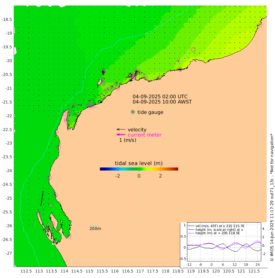 1cm/s -124T +12cm/s rms + 5cm/s -173T. NWSBAR 206m 3cm/s -134T +22cm/s rms + 10cm/s -148T. TAN100 109m 2cm/s -78T +11cm/s rms + 8cm/s -129T. PIL200 208m 4cm/s -43T +13cm/s rms + 7cm/s -137T. PIL100 105m 4cm/s -21T +12cm/s rms + 2cm/s -92T. PIL050 55m 2cm/s -130T +18cm/s rms + 4cm/s -149T. NRSNIN 61m 10cm/s -50T +6cm/s rms + 3cm/s 112T. NW Shelf M6 65m 16cm Withnell Point 29cm Denham 29cm Shark Bay (Inr Bn) 30cm Shark Bay 34cm Useless Loop 8cm Hamelin Pool 10cm Carnarvon 3cm Cape Cuvier 4cm Coral Bay 3cm Norwegian Bay 17cm Badjirrajirra 6cm Tantabiddi 12cm Point Murat 16cm Exmouth 18cm Learmonth 14cm Y Island 10cm North Muiron Island 10cm Roller 13cm Ashburton North 15cm Onslow (Beadon Creek) 14cm Thevenard Island 47cm Large Island 27cm North Sandy Island 21cm Barrow Island (Wapet Landing) 30cm Barrow Island (Tanker Mooring) 29cm Withnell Bay 20cm Trimouille Island 18cm North West Island 56cm Fortescue Road 19cm Steamboat Island 14cm Sholl Island 27cm Fairway Beacon 25cm Mawby Island 29cm Dampier (King Bay) 25cm Cape Legendre 30cm Hauy Island 37cm Port Walcott (Cape Lambert) 48cm Depuch Island 46cm Port Hedland 51cm Bedout Island 104cm Lagrange Bay
