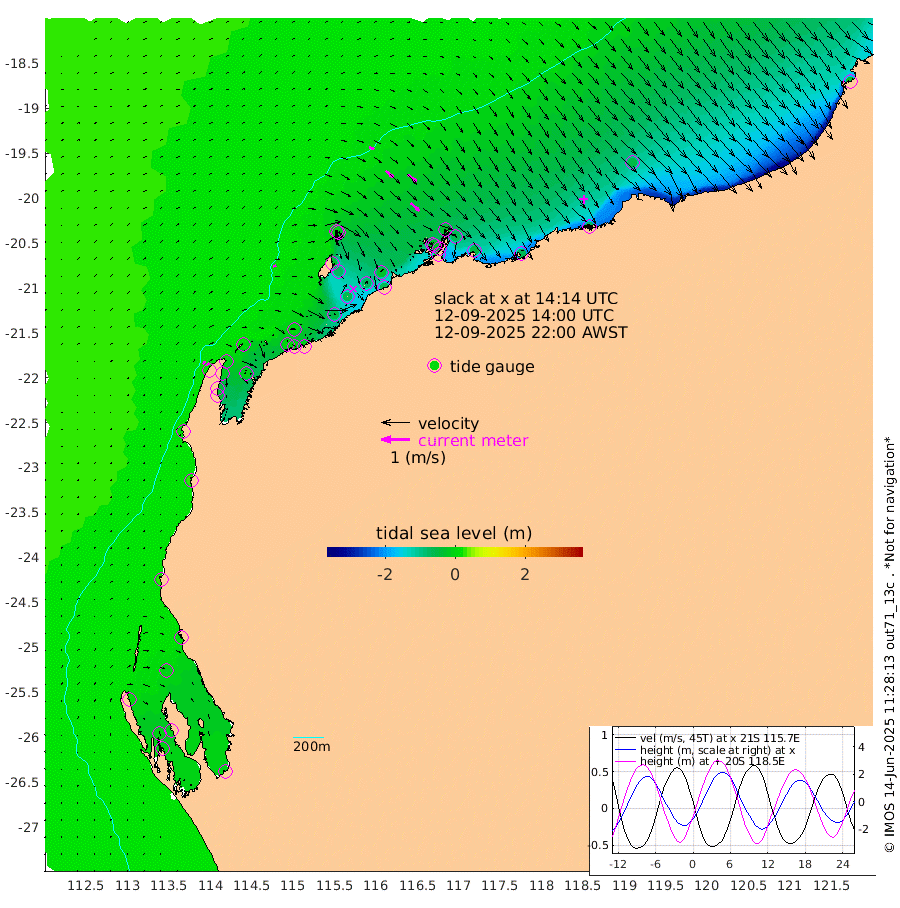 11cm/s 80T +12cm/s rms + 5cm/s -173T. NWSBAR 206m 12cm/s 40T +22cm/s rms + 10cm/s -148T. TAN100 109m 19cm/s 110T +11cm/s rms + 8cm/s -129T. PIL200 208m 34cm/s 129T +13cm/s rms + 7cm/s -137T. PIL100 105m 41cm/s 132T +12cm/s rms + 2cm/s -92T. PIL050 55m 12cm/s 49T +18cm/s rms + 4cm/s -149T. NRSNIN 61m 40cm/s 130T +6cm/s rms + 3cm/s 112T. NW Shelf M6 65m 4cm Withnell Point -11cm Denham -8cm Shark Bay (Inr Bn) -8cm Shark Bay -10cm Useless Loop -2cm Hamelin Pool 6cm Carnarvon 25cm Cape Cuvier 26cm Coral Bay 21cm Norwegian Bay -30cm Badjirrajirra 21cm Tantabiddi -7cm Point Murat -21cm Exmouth -27cm Learmonth -8cm Y Island 10cm North Muiron Island 5cm Roller 4cm Ashburton North -5cm Onslow (Beadon Creek) 3cm Thevenard Island -50cm Large Island -66cm North Sandy Island -23cm Barrow Island (Wapet Landing) -71cm Barrow Island (Tanker Mooring) -28cm Withnell Bay -24cm Trimouille Island -1cm North West Island -65cm Fortescue Road -33cm Steamboat Island -71cm Sholl Island -31cm Fairway Beacon -26cm Mawby Island -29cm Dampier (King Bay) -24cm Cape Legendre -58cm Hauy Island -56cm Port Walcott (Cape Lambert) -64cm Depuch Island -72cm Port Hedland -50cm Bedout Island -25cm Lagrange Bay