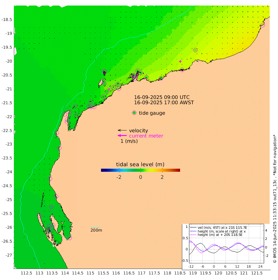 3cm/s -19T +12cm/s rms + 5cm/s -173T. NWSBAR 206m 1cm/s 176T +22cm/s rms + 10cm/s -148T. TAN100 109m 1cm/s 82T +11cm/s rms + 8cm/s -129T. PIL200 208m 1cm/s 50T +13cm/s rms + 7cm/s -137T. PIL100 105m 1cm/s 24T +12cm/s rms + 2cm/s -92T. PIL050 55m 0cm/s 162T +18cm/s rms + 4cm/s -149T. NRSNIN 61m 1cm/s -114T +6cm/s rms + 3cm/s 112T. NW Shelf M6 65m -21cm Withnell Point -34cm Denham -34cm Shark Bay (Inr Bn) -34cm Shark Bay -38cm Useless Loop -7cm Hamelin Pool -13cm Carnarvon -12cm Cape Cuvier -11cm Coral Bay -5cm Norwegian Bay 7cm Badjirrajirra -9cm Tantabiddi -1cm Point Murat 3cm Exmouth 7cm Learmonth 1cm Y Island -5cm North Muiron Island -2cm Roller 0cm Ashburton North 2cm Onslow (Beadon Creek) 0cm Thevenard Island 18cm Large Island 20cm North Sandy Island 11cm Barrow Island (Wapet Landing) 21cm Barrow Island (Tanker Mooring) 21cm Withnell Bay 15cm Trimouille Island -4cm North West Island 34cm Fortescue Road 15cm Steamboat Island 39cm Sholl Island 22cm Fairway Beacon 20cm Mawby Island 22cm Dampier (King Bay) 25cm Cape Legendre 30cm Hauy Island 32cm Port Walcott (Cape Lambert) 22cm Depuch Island 44cm Port Hedland 38cm Bedout Island 78cm Lagrange Bay