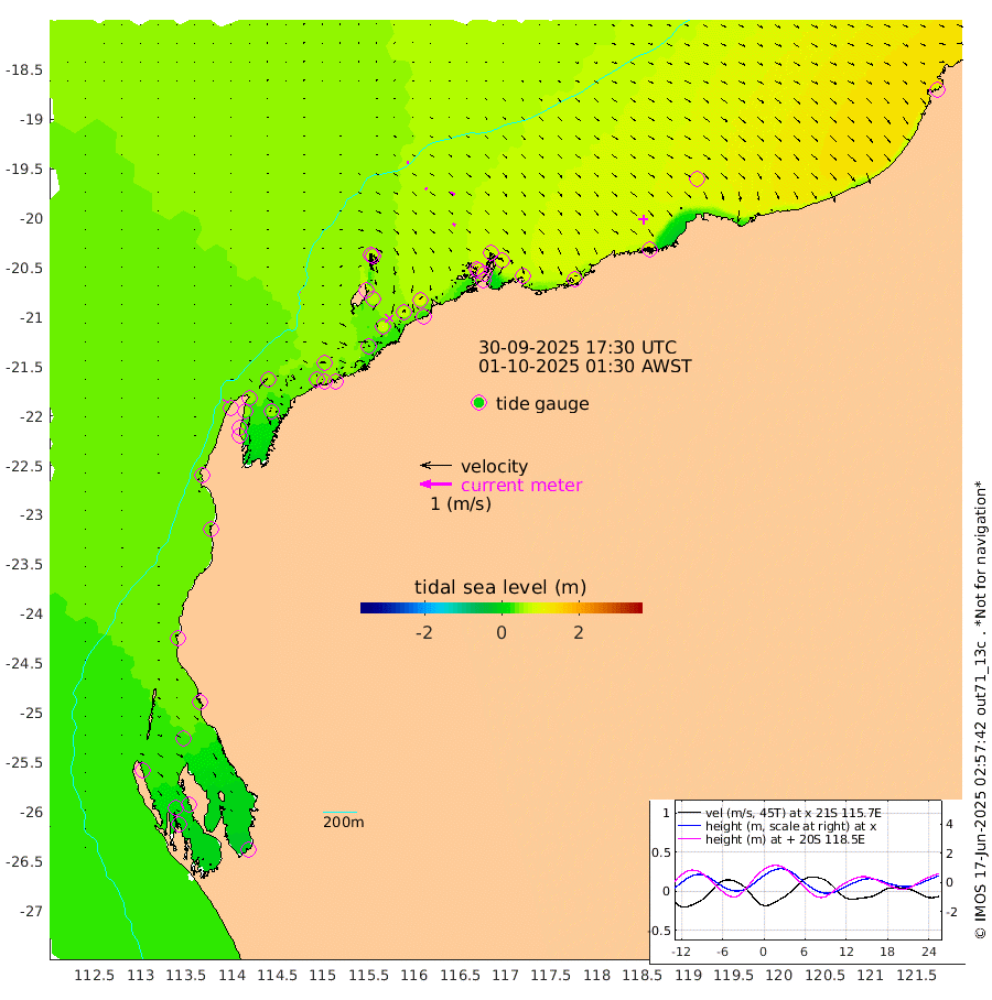 1cm/s 55T +12cm/s rms + 5cm/s -173T. NWSBAR 206m 4cm/s 37T +22cm/s rms + 10cm/s -148T. TAN100 109m 5cm/s 106T +11cm/s rms + 8cm/s -129T. PIL200 208m 8cm/s 119T +13cm/s rms + 7cm/s -137T. PIL100 105m 9cm/s 123T +12cm/s rms + 2cm/s -92T. PIL050 55m 4cm/s 43T +18cm/s rms + 4cm/s -149T. NRSNIN 61m 17cm/s 117T +6cm/s rms + 3cm/s 112T. NW Shelf M6 65m 28cm Withnell Point 21cm Denham 20cm Shark Bay (Inr Bn) 24cm Shark Bay 16cm Useless Loop -8cm Hamelin Pool 39cm Carnarvon 38cm Cape Cuvier 39cm Coral Bay 38cm Norwegian Bay 53cm Badjirrajirra 42cm Tantabiddi 47cm Point Murat 50cm Exmouth 48cm Learmonth 52cm Y Island 46cm North Muiron Island 52cm Roller 50cm Ashburton North 53cm Onslow (Beadon Creek) 52cm Thevenard Island 37cm Large Island 69cm North Sandy Island 60cm Barrow Island (Wapet Landing) 65cm Barrow Island (Tanker Mooring) 79cm Withnell Bay 59cm Trimouille Island 58cm North West Island 28cm Fortescue Road 92cm Steamboat Island 73cm Sholl Island 77cm Fairway Beacon 79cm Mawby Island 78cm Dampier (King Bay) 78cm Cape Legendre 79cm Hauy Island 89cm Port Walcott (Cape Lambert) 97cm Depuch Island 105cm Port Hedland 109cm Bedout Island 81cm Lagrange Bay