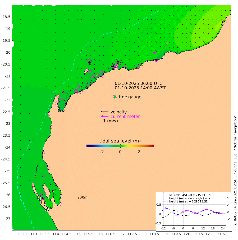 2cm/s 13T +12cm/s rms + 5cm/s -173T. NWSBAR 206m 0cm/s 33T +22cm/s rms + 10cm/s -148T. TAN100 109m 4cm/s 99T +11cm/s rms + 8cm/s -129T. PIL200 208m 5cm/s 127T +13cm/s rms + 7cm/s -137T. PIL100 105m 5cm/s 137T +12cm/s rms + 2cm/s -92T. PIL050 55m 1cm/s -175T +18cm/s rms + 4cm/s -149T. NRSNIN 61m 9cm/s 134T +6cm/s rms + 3cm/s 112T. NW Shelf M6 65m -26cm Withnell Point -31cm Denham -27cm Shark Bay (Inr Bn) -32cm Shark Bay -26cm Useless Loop 7cm Hamelin Pool -26cm Carnarvon -18cm Cape Cuvier -18cm Coral Bay -17cm Norwegian Bay -13cm Badjirrajirra -16cm Tantabiddi -15cm Point Murat -14cm Exmouth -9cm Learmonth -12cm Y Island -14cm North Muiron Island -10cm Roller -12cm Ashburton North -11cm Onslow (Beadon Creek) -12cm Thevenard Island -38cm Large Island -5cm North Sandy Island -8cm Barrow Island (Wapet Landing) -7cm Barrow Island (Tanker Mooring) 2cm Withnell Bay -2cm Trimouille Island -13cm North West Island -37cm Fortescue Road 1cm Steamboat Island 14cm Sholl Island 2cm Fairway Beacon 4cm Mawby Island 1cm Dampier (King Bay) 0cm Cape Legendre 2cm Hauy Island 7cm Port Walcott (Cape Lambert) 4cm Depuch Island 18cm Port Hedland 23cm Bedout Island -8cm Lagrange Bay