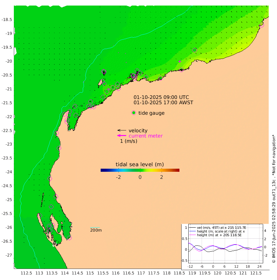 3cm/s -48T +12cm/s rms + 5cm/s -173T. NWSBAR 206m 1cm/s -166T +22cm/s rms + 10cm/s -148T. TAN100 109m 1cm/s -27T +11cm/s rms + 8cm/s -129T. PIL200 208m 2cm/s -52T +13cm/s rms + 7cm/s -137T. PIL100 105m 3cm/s -36T +12cm/s rms + 2cm/s -92T. PIL050 55m 0cm/s 144T +18cm/s rms + 4cm/s -149T. NRSNIN 61m 3cm/s -17T +6cm/s rms + 3cm/s 112T. NW Shelf M6 65m -15cm Withnell Point -26cm Denham -27cm Shark Bay (Inr Bn) -28cm Shark Bay -32cm Useless Loop -7cm Hamelin Pool -10cm Carnarvon -10cm Cape Cuvier -10cm Coral Bay -5cm Norwegian Bay -1cm Badjirrajirra -10cm Tantabiddi -5cm Point Murat -3cm Exmouth 0cm Learmonth -2cm Y Island -7cm North Muiron Island -4cm Roller -6cm Ashburton North -5cm Onslow (Beadon Creek) -6cm Thevenard Island 16cm Large Island 6cm North Sandy Island -2cm Barrow Island (Wapet Landing) 6cm Barrow Island (Tanker Mooring) 0cm Withnell Bay -3cm Trimouille Island -11cm North West Island 32cm Fortescue Road -6cm Steamboat Island 12cm Sholl Island 2cm Fairway Beacon 3cm Mawby Island 0cm Dampier (King Bay) 3cm Cape Legendre 7cm Hauy Island 4cm Port Walcott (Cape Lambert) 3cm Depuch Island 8cm Port Hedland -6cm Bedout Island 79cm Lagrange Bay