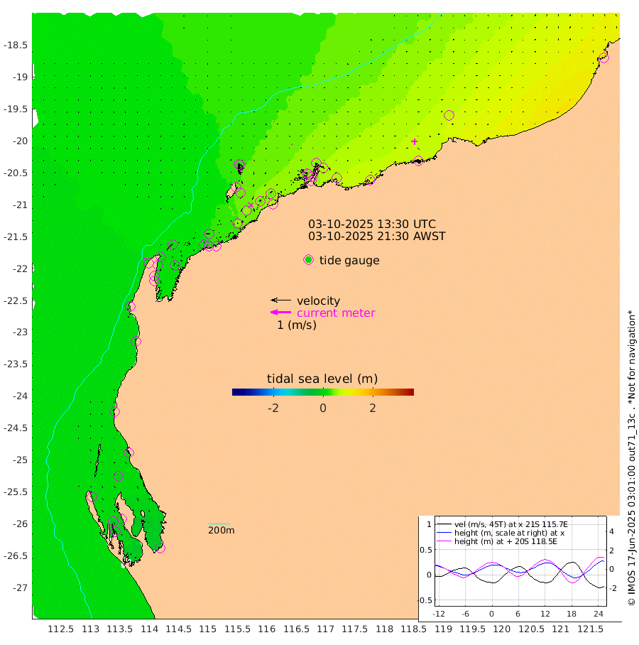2cm/s -65T +12cm/s rms + 5cm/s -173T. NWSBAR 206m 3cm/s 42T +22cm/s rms + 10cm/s -148T. TAN100 109m 1cm/s -154T +11cm/s rms + 8cm/s -129T. PIL200 208m 3cm/s 123T +13cm/s rms + 7cm/s -137T. PIL100 105m 3cm/s 103T +12cm/s rms + 2cm/s -92T. PIL050 55m 4cm/s 43T +18cm/s rms + 4cm/s -149T. NRSNIN 61m 2cm/s 68T +6cm/s rms + 3cm/s 112T. NW Shelf M6 65m 5cm Withnell Point -5cm Denham -7cm Shark Bay (Inr Bn) -5cm Shark Bay -15cm Useless Loop -13cm Hamelin Pool 14cm Carnarvon 10cm Cape Cuvier 11cm Coral Bay 11cm Norwegian Bay 24cm Badjirrajirra 13cm Tantabiddi 19cm Point Murat 22cm Exmouth 27cm Learmonth 21cm Y Island 16cm North Muiron Island 21cm Roller 24cm Ashburton North 25cm Onslow (Beadon Creek) 24cm Thevenard Island 48cm Large Island 51cm North Sandy Island 35cm Barrow Island (Wapet Landing) 44cm Barrow Island (Tanker Mooring) 53cm Withnell Bay 31cm Trimouille Island 27cm North West Island 65cm Fortescue Road 42cm Steamboat Island 36cm Sholl Island 52cm Fairway Beacon 51cm Mawby Island 52cm Dampier (King Bay) 53cm Cape Legendre 56cm Hauy Island 65cm Port Walcott (Cape Lambert) 83cm Depuch Island 82cm Port Hedland 77cm Bedout Island 142cm Lagrange Bay