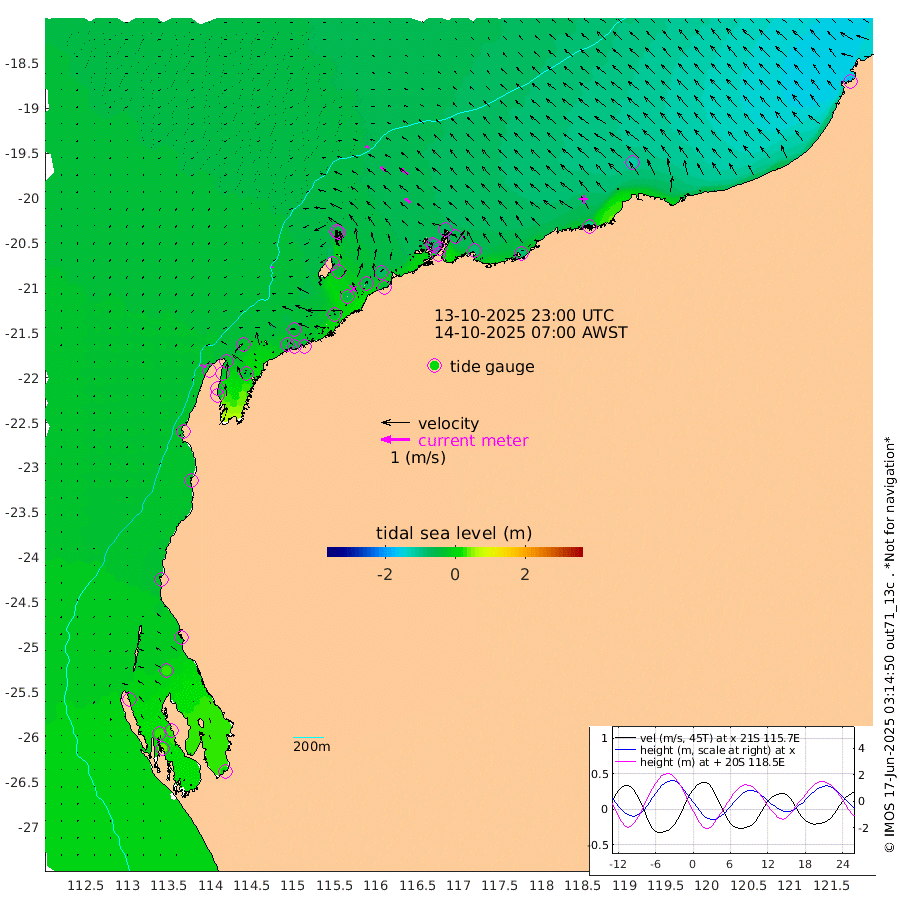 5cm/s -139T +12cm/s rms + 5cm/s -173T. NWSBAR 206m 9cm/s -138T +22cm/s rms + 10cm/s -148T. TAN100 109m 12cm/s -73T +11cm/s rms + 8cm/s -129T. PIL200 208m 21cm/s -54T +13cm/s rms + 7cm/s -137T. PIL100 105m 25cm/s -51T +12cm/s rms + 2cm/s -92T. PIL050 55m 9cm/s -132T +18cm/s rms + 4cm/s -149T. NRSNIN 61m 32cm/s -51T +6cm/s rms + 3cm/s 112T. NW Shelf M6 65m 4cm Withnell Point 30cm Denham 30cm Shark Bay (Inr Bn) 27cm Shark Bay 39cm Useless Loop 15cm Hamelin Pool -14cm Carnarvon -24cm Cape Cuvier -27cm Coral Bay -26cm Norwegian Bay -29cm Badjirrajirra -29cm Tantabiddi -27cm Point Murat -27cm Exmouth -31cm Learmonth -34cm Y Island -31cm North Muiron Island -39cm Roller -39cm Ashburton North -38cm Onslow (Beadon Creek) -40cm Thevenard Island -34cm Large Island -52cm North Sandy Island -46cm Barrow Island (Wapet Landing) -42cm Barrow Island (Tanker Mooring) -72cm Withnell Bay -50cm Trimouille Island -40cm North West Island -39cm Fortescue Road -68cm Steamboat Island -63cm Sholl Island -70cm Fairway Beacon -72cm Mawby Island -72cm Dampier (King Bay) -68cm Cape Legendre -66cm Hauy Island -83cm Port Walcott (Cape Lambert) -86cm Depuch Island -104cm Port Hedland -116cm Bedout Island -173cm Lagrange Bay