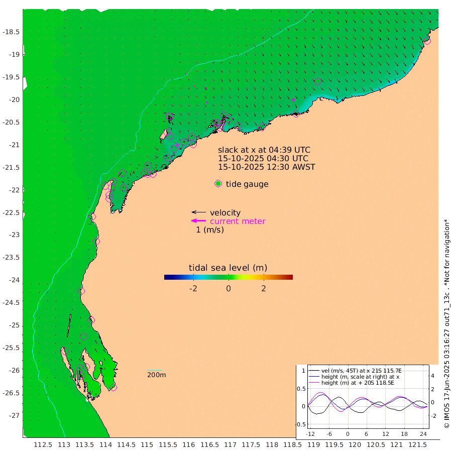 2cm/s 78T +12cm/s rms + 5cm/s -173T. NWSBAR 206m 1cm/s 30T +22cm/s rms + 10cm/s -148T. TAN100 109m 6cm/s 106T +11cm/s rms + 8cm/s -129T. PIL200 208m 9cm/s 132T +13cm/s rms + 7cm/s -137T. PIL100 105m 11cm/s 139T +12cm/s rms + 2cm/s -92T. PIL050 55m 1cm/s 165T +18cm/s rms + 4cm/s -149T. NRSNIN 61m 17cm/s 131T +6cm/s rms + 3cm/s 112T. NW Shelf M6 65m -31cm Withnell Point -28cm Denham -24cm Shark Bay (Inr Bn) -30cm Shark Bay -17cm Useless Loop 15cm Hamelin Pool -39cm Carnarvon -27cm Cape Cuvier -26cm Coral Bay -28cm Norwegian Bay -45cm Badjirrajirra -26cm Tantabiddi -37cm Point Murat -42cm Exmouth -40cm Learmonth -35cm Y Island -28cm North Muiron Island -29cm Roller -33cm Ashburton North -36cm Onslow (Beadon Creek) -34cm Thevenard Island -57cm Large Island -54cm North Sandy Island -42cm Barrow Island (Wapet Landing) -57cm Barrow Island (Tanker Mooring) -43cm Withnell Bay -37cm Trimouille Island -32cm North West Island -60cm Fortescue Road -40cm Steamboat Island -45cm Sholl Island -43cm Fairway Beacon -42cm Mawby Island -44cm Dampier (King Bay) -52cm Cape Legendre -49cm Hauy Island -50cm Port Walcott (Cape Lambert) -44cm Depuch Island -51cm Port Hedland -38cm Bedout Island -28cm Lagrange Bay