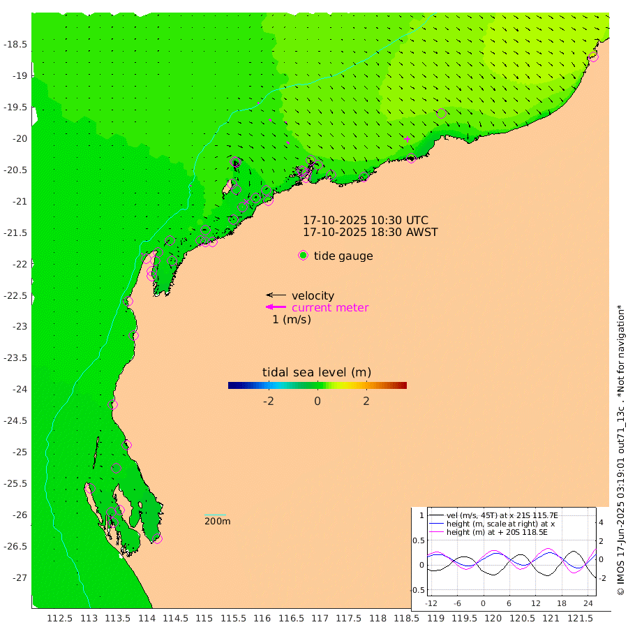 4cm/s 45T +12cm/s rms + 5cm/s -173T. NWSBAR 206m 5cm/s 46T +22cm/s rms + 10cm/s -148T. TAN100 109m 7cm/s 109T +11cm/s rms + 8cm/s -129T. PIL200 208m 13cm/s 124T +13cm/s rms + 7cm/s -137T. PIL100 105m 16cm/s 125T +12cm/s rms + 2cm/s -92T. PIL050 55m 5cm/s 50T +18cm/s rms + 4cm/s -149T. NRSNIN 61m 10cm/s 118T +6cm/s rms + 3cm/s 112T. NW Shelf M6 65m -2cm Withnell Point -15cm Denham -16cm Shark Bay (Inr Bn) -16cm Shark Bay -20cm Useless Loop -8cm Hamelin Pool 8cm Carnarvon 12cm Cape Cuvier 13cm Coral Bay 17cm Norwegian Bay 12cm Badjirrajirra 13cm Tantabiddi 11cm Point Murat 11cm Exmouth 11cm Learmonth 14cm Y Island 13cm North Muiron Island 13cm Roller 17cm Ashburton North 16cm Onslow (Beadon Creek) 17cm Thevenard Island 16cm Large Island 8cm North Sandy Island 18cm Barrow Island (Wapet Landing) 9cm Barrow Island (Tanker Mooring) 28cm Withnell Bay 15cm Trimouille Island 12cm North West Island 33cm Fortescue Road 18cm Steamboat Island 14cm Sholl Island 27cm Fairway Beacon 27cm Mawby Island 28cm Dampier (King Bay) 37cm Cape Legendre 23cm Hauy Island 29cm Port Walcott (Cape Lambert) 21cm Depuch Island 35cm Port Hedland 35cm Bedout Island 93cm Lagrange Bay