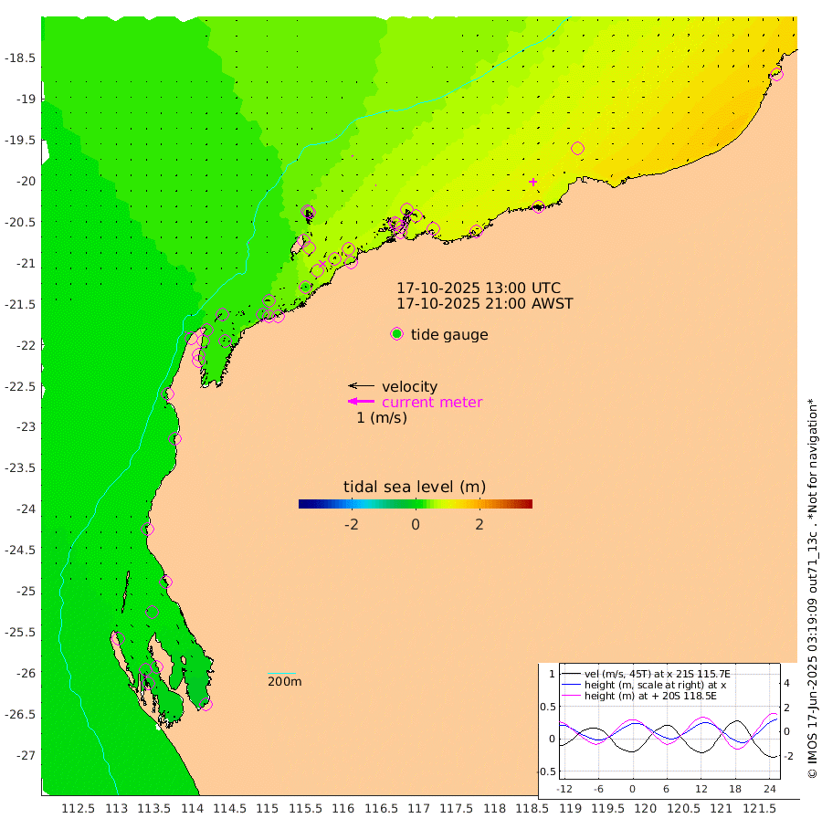 2cm/s -56T +12cm/s rms + 5cm/s -173T. NWSBAR 206m 3cm/s 47T +22cm/s rms + 10cm/s -148T. TAN100 109m 1cm/s -130T +11cm/s rms + 8cm/s -129T. PIL200 208m 3cm/s 105T +13cm/s rms + 7cm/s -137T. PIL100 105m 3cm/s 85T +12cm/s rms + 2cm/s -92T. PIL050 55m 3cm/s 42T +18cm/s rms + 4cm/s -149T. NRSNIN 61m 1cm/s 10T +6cm/s rms + 3cm/s 112T. NW Shelf M6 65m 12cm Withnell Point 4cm Denham 1cm Shark Bay (Inr Bn) 4cm Shark Bay -6cm Useless Loop -12cm Hamelin Pool 22cm Carnarvon 16cm Cape Cuvier 16cm Coral Bay 18cm Norwegian Bay 39cm Badjirrajirra 20cm Tantabiddi 30cm Point Murat 35cm Exmouth 38cm Learmonth 31cm Y Island 24cm North Muiron Island 28cm Roller 34cm Ashburton North 37cm Onslow (Beadon Creek) 35cm Thevenard Island 32cm Large Island 62cm North Sandy Island 50cm Barrow Island (Wapet Landing) 61cm Barrow Island (Tanker Mooring) 72cm Withnell Bay 48cm Trimouille Island 39cm North West Island 46cm Fortescue Road 70cm Steamboat Island 56cm Sholl Island 70cm Fairway Beacon 68cm Mawby Island 71cm Dampier (King Bay) 78cm Cape Legendre 78cm Hauy Island 88cm Port Walcott (Cape Lambert) 102cm Depuch Island 108cm Port Hedland 104cm Bedout Island 89cm Lagrange Bay