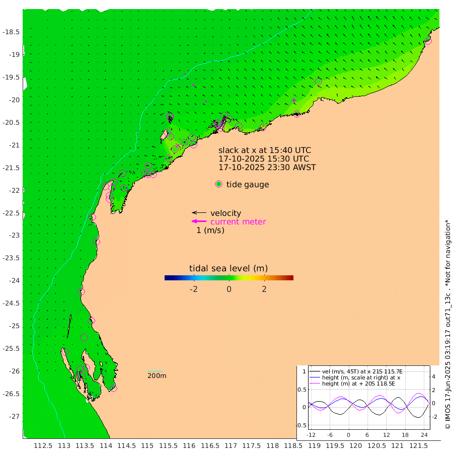 5cm/s -120T +12cm/s rms + 5cm/s -173T. NWSBAR 206m 2cm/s -131T +22cm/s rms + 10cm/s -148T. TAN100 109m 8cm/s -78T +11cm/s rms + 8cm/s -129T. PIL200 208m 12cm/s -56T +13cm/s rms + 7cm/s -137T. PIL100 105m 15cm/s -51T +12cm/s rms + 2cm/s -92T. PIL050 55m 2cm/s -118T +18cm/s rms + 4cm/s -149T. NRSNIN 61m 8cm/s -57T +6cm/s rms + 3cm/s 112T. NW Shelf M6 65m 7cm Withnell Point 12cm Denham 9cm Shark Bay (Inr Bn) 12cm Shark Bay 7cm Useless Loop -3cm Hamelin Pool 6cm Carnarvon -1cm Cape Cuvier -2cm Coral Bay -4cm Norwegian Bay 13cm Badjirrajirra 0cm Tantabiddi 8cm Point Murat 11cm Exmouth 10cm Learmonth 6cm Y Island 2cm North Muiron Island 5cm Roller 4cm Ashburton North 7cm Onslow (Beadon Creek) 5cm Thevenard Island 6cm Large Island 33cm North Sandy Island 13cm Barrow Island (Wapet Landing) 30cm Barrow Island (Tanker Mooring) 18cm Withnell Bay 16cm Trimouille Island 11cm North West Island 2cm Fortescue Road 32cm Steamboat Island 21cm Sholl Island 18cm Fairway Beacon 15cm Mawby Island 17cm Dampier (King Bay) 14cm Cape Legendre 28cm Hauy Island 27cm Port Walcott (Cape Lambert) 47cm Depuch Island 33cm Port Hedland 33cm Bedout Island -29cm Lagrange Bay