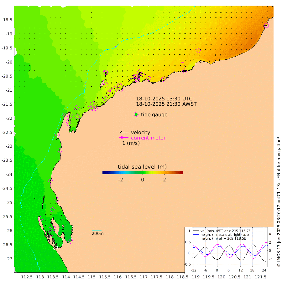 3cm/s -48T +12cm/s rms + 5cm/s -173T. NWSBAR 206m 3cm/s 45T +22cm/s rms + 10cm/s -148T. TAN100 109m 1cm/s 134T +11cm/s rms + 8cm/s -129T. PIL200 208m 5cm/s 106T +13cm/s rms + 7cm/s -137T. PIL100 105m 6cm/s 98T +12cm/s rms + 2cm/s -92T. PIL050 55m 3cm/s 43T +18cm/s rms + 4cm/s -149T. NRSNIN 61m 6cm/s 89T +6cm/s rms + 3cm/s 112T. NW Shelf M6 65m 20cm Withnell Point 11cm Denham 8cm Shark Bay (Inr Bn) 11cm Shark Bay 1cm Useless Loop -13cm Hamelin Pool 33cm Carnarvon 25cm Cape Cuvier 27cm Coral Bay 28cm Norwegian Bay 60cm Badjirrajirra 32cm Tantabiddi 46cm Point Murat 53cm Exmouth 60cm Learmonth 50cm Y Island 40cm North Muiron Island 46cm Roller 53cm Ashburton North 57cm Onslow (Beadon Creek) 55cm Thevenard Island 56cm Large Island 94cm North Sandy Island 76cm Barrow Island (Wapet Landing) 92cm Barrow Island (Tanker Mooring) 108cm Withnell Bay 71cm Trimouille Island 61cm North West Island 75cm Fortescue Road 105cm Steamboat Island 88cm Sholl Island 106cm Fairway Beacon 106cm Mawby Island 108cm Dampier (King Bay) 114cm Cape Legendre 115cm Hauy Island 133cm Port Walcott (Cape Lambert) 149cm Depuch Island 163cm Port Hedland 160cm Bedout Island 164cm Lagrange Bay