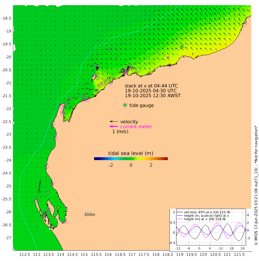 8cm/s -110T +12cm/s rms + 5cm/s -173T. NWSBAR 206m 6cm/s -136T +22cm/s rms + 10cm/s -148T. TAN100 109m 11cm/s -68T +11cm/s rms + 8cm/s -129T. PIL200 208m 20cm/s -51T +13cm/s rms + 7cm/s -137T. PIL100 105m 23cm/s -46T +12cm/s rms + 2cm/s -92T. PIL050 55m 7cm/s -132T +18cm/s rms + 4cm/s -149T. NRSNIN 61m 21cm/s -55T +6cm/s rms + 3cm/s 112T. NW Shelf M6 65m 5cm Withnell Point 10cm Denham 10cm Shark Bay (Inr Bn) 7cm Shark Bay 7cm Useless Loop -1cm Hamelin Pool 0cm Carnarvon -10cm Cape Cuvier -11cm Coral Bay -12cm Norwegian Bay 17cm Badjirrajirra -8cm Tantabiddi 6cm Point Murat 13cm Exmouth 24cm Learmonth 2cm Y Island -4cm North Muiron Island 0cm Roller -1cm Ashburton North 4cm Onslow (Beadon Creek) 0cm Thevenard Island 14cm Large Island 43cm North Sandy Island 15cm Barrow Island (Wapet Landing) 43cm Barrow Island (Tanker Mooring) 18cm Withnell Bay 25cm Trimouille Island 8cm North West Island 4cm Fortescue Road 24cm Steamboat Island 40cm Sholl Island 19cm Fairway Beacon 19cm Mawby Island 18cm Dampier (King Bay) 16cm Cape Legendre 34cm Hauy Island 34cm Port Walcott (Cape Lambert) 47cm Depuch Island 43cm Port Hedland 18cm Bedout Island -38cm Lagrange Bay