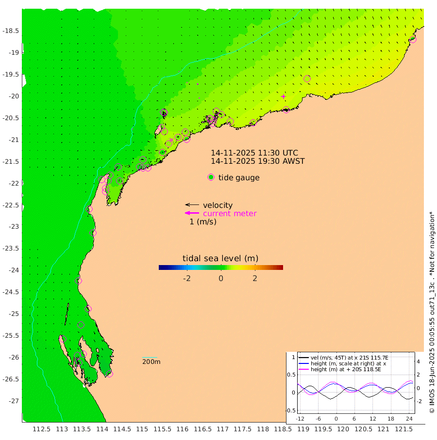2cm/s -92T +12cm/s rms + 5cm/s -173T. NWSBAR 206m 1cm/s 57T +22cm/s rms + 10cm/s -148T. TAN100 109m 4cm/s -80T +11cm/s rms + 8cm/s -129T. PIL200 208m 3cm/s -36T +13cm/s rms + 7cm/s -137T. PIL100 105m 4cm/s -23T +12cm/s rms + 2cm/s -92T. PIL050 55m 1cm/s 35T +18cm/s rms + 4cm/s -149T. NRSNIN 61m 9cm/s -47T +6cm/s rms + 3cm/s 112T. NW Shelf M6 65m 16cm Withnell Point 12cm Denham 8cm Shark Bay (Inr Bn) 11cm Shark Bay 3cm Useless Loop -11cm Hamelin Pool 24cm Carnarvon 15cm Cape Cuvier 15cm Coral Bay 18cm Norwegian Bay 35cm Badjirrajirra 17cm Tantabiddi 27cm Point Murat 31cm Exmouth 32cm Learmonth 26cm Y Island 20cm North Muiron Island 21cm Roller 27cm Ashburton North 30cm Onslow (Beadon Creek) 27cm Thevenard Island 15cm Large Island 48cm North Sandy Island 38cm Barrow Island (Wapet Landing) 50cm Barrow Island (Tanker Mooring) 49cm Withnell Bay 36cm Trimouille Island 27cm North West Island 26cm Fortescue Road 49cm Steamboat Island 44cm Sholl Island 49cm Fairway Beacon 46cm Mawby Island 49cm Dampier (King Bay) 58cm Cape Legendre 55cm Hauy Island 60cm Port Walcott (Cape Lambert) 66cm Depuch Island 70cm Port Hedland 61cm Bedout Island 8cm Lagrange Bay