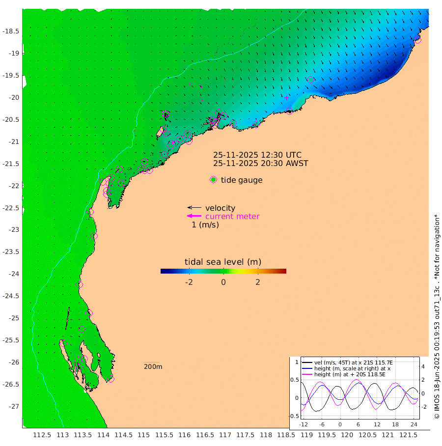4cm/s 104T +12cm/s rms + 5cm/s -173T. NWSBAR 206m 6cm/s 40T +22cm/s rms + 10cm/s -148T. TAN100 109m 3cm/s 112T +11cm/s rms + 8cm/s -129T. PIL200 208m 10cm/s 136T +13cm/s rms + 7cm/s -137T. PIL100 105m 11cm/s 146T +12cm/s rms + 2cm/s -92T. PIL050 55m 5cm/s 46T +18cm/s rms + 4cm/s -149T. NRSNIN 61m 16cm/s 142T +6cm/s rms + 3cm/s 112T. NW Shelf M6 65m 9cm Withnell Point 6cm Denham 3cm Shark Bay (Inr Bn) 9cm Shark Bay 5cm Useless Loop -3cm Hamelin Pool 6cm Carnarvon 14cm Cape Cuvier 12cm Coral Bay 8cm Norwegian Bay -32cm Badjirrajirra 6cm Tantabiddi -13cm Point Murat -24cm Exmouth -37cm Learmonth -21cm Y Island -5cm North Muiron Island -13cm Roller -14cm Ashburton North -20cm Onslow (Beadon Creek) -15cm Thevenard Island -99cm Large Island -71cm North Sandy Island -40cm Barrow Island (Wapet Landing) -71cm Barrow Island (Tanker Mooring) -63cm Withnell Bay -43cm Trimouille Island -20cm North West Island -120cm Fortescue Road -52cm Steamboat Island -79cm Sholl Island -62cm Fairway Beacon -62cm Mawby Island -63cm Dampier (King Bay) -57cm Cape Legendre -81cm Hauy Island -91cm Port Walcott (Cape Lambert) -105cm Depuch Island -121cm Port Hedland -107cm Bedout Island -235cm Lagrange Bay
