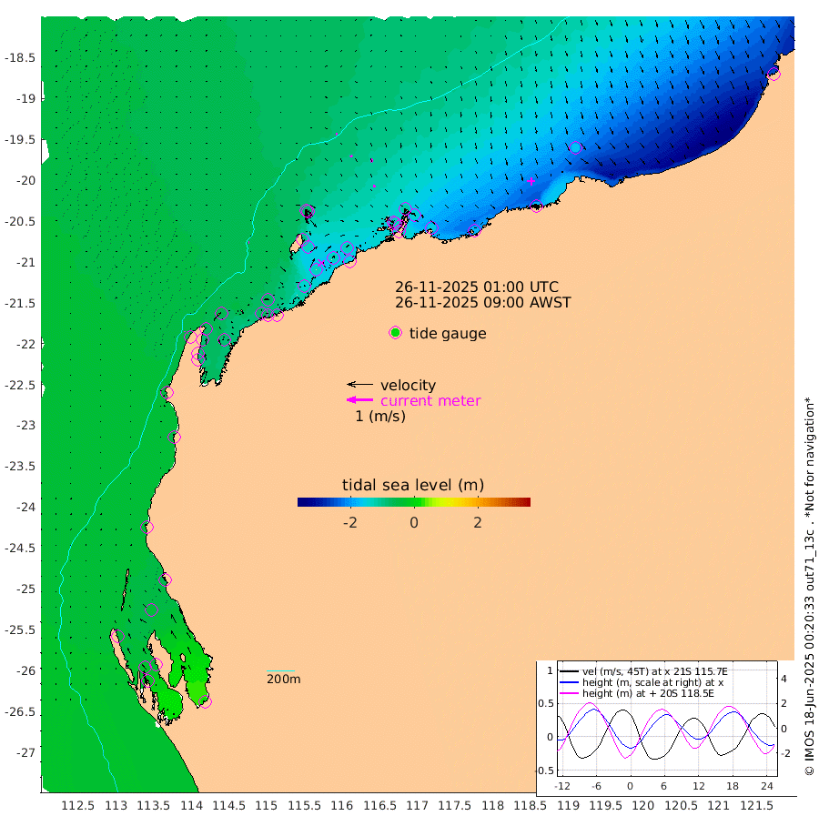 4cm/s 84T +12cm/s rms + 5cm/s -173T. NWSBAR 206m 1cm/s -153T +22cm/s rms + 10cm/s -148T. TAN100 109m 4cm/s 106T +11cm/s rms + 8cm/s -129T. PIL200 208m 8cm/s 139T +13cm/s rms + 7cm/s -137T. PIL100 105m 10cm/s 153T +12cm/s rms + 2cm/s -92T. PIL050 55m 2cm/s -161T +18cm/s rms + 4cm/s -149T. NRSNIN 61m 13cm/s 167T +6cm/s rms + 3cm/s 112T. NW Shelf M6 65m -43cm Withnell Point -35cm Denham -28cm Shark Bay (Inr Bn) -36cm Shark Bay -18cm Useless Loop 21cm Hamelin Pool -61cm Carnarvon -44cm Cape Cuvier -45cm Coral Bay -48cm Norwegian Bay -94cm Badjirrajirra -50cm Tantabiddi -73cm Point Murat -84cm Exmouth -88cm Learmonth -81cm Y Island -62cm North Muiron Island -70cm Roller -73cm Ashburton North -79cm Onslow (Beadon Creek) -75cm Thevenard Island -138cm Large Island -135cm North Sandy Island -100cm Barrow Island (Wapet Landing) -134cm Barrow Island (Tanker Mooring) -124cm Withnell Bay -89cm Trimouille Island -81cm North West Island -154cm Fortescue Road -129cm Steamboat Island -125cm Sholl Island -124cm Fairway Beacon -125cm Mawby Island -125cm Dampier (King Bay) -123cm Cape Legendre -139cm Hauy Island -152cm Port Walcott (Cape Lambert) -170cm Depuch Island -178cm Port Hedland -159cm Bedout Island -251cm Lagrange Bay