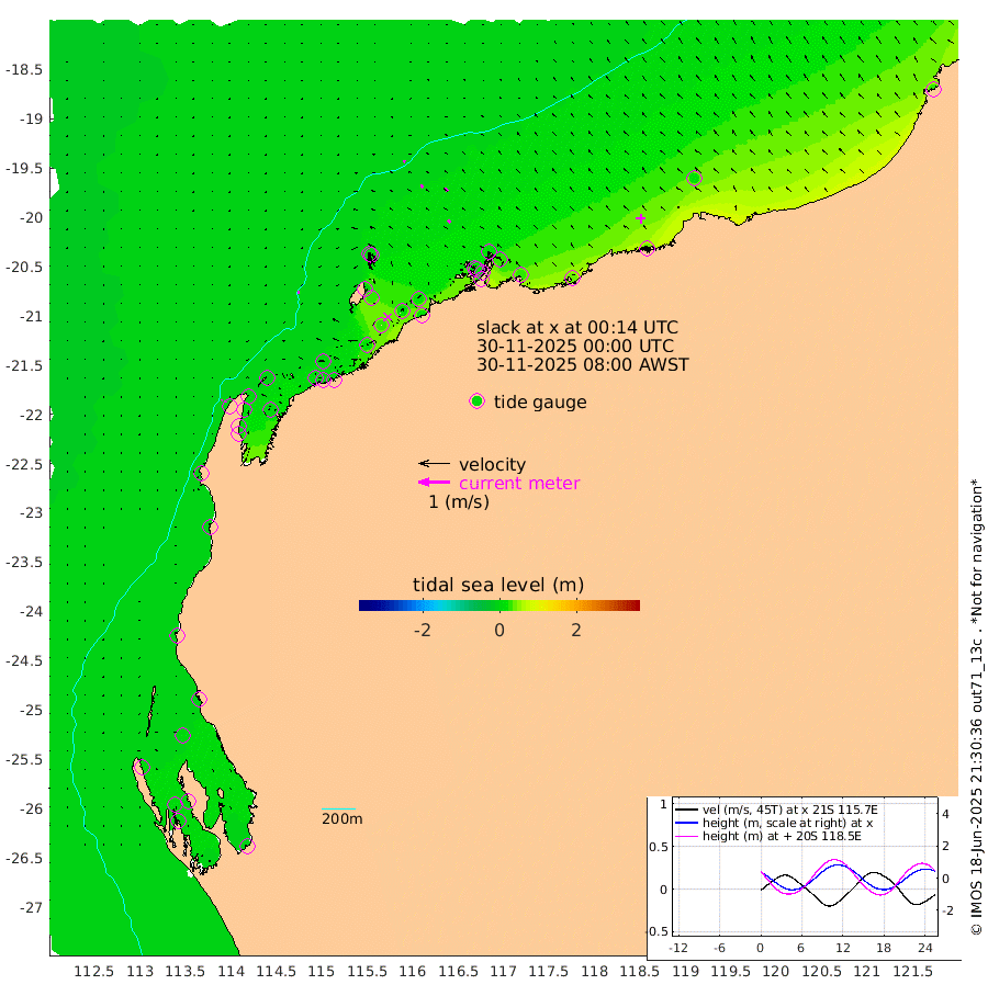 5cm/s -85T +12cm/s rms + 5cm/s -173T. NWSBAR 206m 5cm/s -145T +22cm/s rms + 10cm/s -148T. TAN100 109m 6cm/s -66T +11cm/s rms + 8cm/s -129T. PIL200 208m 9cm/s -49T +13cm/s rms + 7cm/s -137T. PIL100 105m 11cm/s -46T +12cm/s rms + 2cm/s -92T. PIL050 55m 4cm/s -131T +18cm/s rms + 4cm/s -149T. NRSNIN 61m 13cm/s -47T +6cm/s rms + 3cm/s 112T. NW Shelf M6 65m 1cm Withnell Point 4cm Denham 2cm Shark Bay (Inr Bn) 3cm Shark Bay 0cm Useless Loop -4cm Hamelin Pool 0cm Carnarvon -7cm Cape Cuvier -8cm Coral Bay -6cm Norwegian Bay 9cm Badjirrajirra -5cm Tantabiddi 2cm Point Murat 7cm Exmouth 13cm Learmonth 3cm Y Island -2cm North Muiron Island 2cm Roller 1cm Ashburton North 3cm Onslow (Beadon Creek) 2cm Thevenard Island 14cm Large Island 25cm North Sandy Island 11cm Barrow Island (Wapet Landing) 25cm Barrow Island (Tanker Mooring) 17cm Withnell Bay 7cm Trimouille Island 9cm North West Island 19cm Fortescue Road 16cm Steamboat Island 22cm Sholl Island 16cm Fairway Beacon 16cm Mawby Island 16cm Dampier (King Bay) 16cm Cape Legendre 30cm Hauy Island 26cm Port Walcott (Cape Lambert) 41cm Depuch Island 34cm Port Hedland 14cm Bedout Island 26cm Lagrange Bay