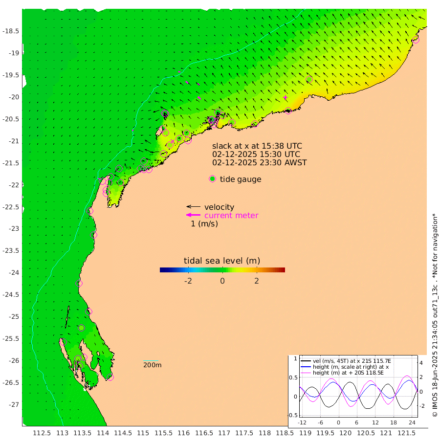 9cm/s -113T +12cm/s rms + 5cm/s -173T. NWSBAR 206m 8cm/s -135T +22cm/s rms + 10cm/s -148T. TAN100 109m 14cm/s -76T +11cm/s rms + 8cm/s -129T. PIL200 208m 24cm/s -53T +13cm/s rms + 7cm/s -137T. PIL100 105m 27cm/s -48T +12cm/s rms + 2cm/s -92T. PIL050 55m 8cm/s -130T +18cm/s rms + 4cm/s -149T. NRSNIN 61m 18cm/s -46T +6cm/s rms + 3cm/s 112T. NW Shelf M6 65m 16cm Withnell Point 36cm Denham 34cm Shark Bay (Inr Bn) 36cm Shark Bay 39cm Useless Loop 9cm Hamelin Pool 6cm Carnarvon -10cm Cape Cuvier -10cm Coral Bay -11cm Norwegian Bay 21cm Badjirrajirra -7cm Tantabiddi 10cm Point Murat 18cm Exmouth 18cm Learmonth 11cm Y Island 1cm North Muiron Island 4cm Roller 3cm Ashburton North 8cm Onslow (Beadon Creek) 4cm Thevenard Island 58cm Large Island 45cm North Sandy Island 18cm Barrow Island (Wapet Landing) 49cm Barrow Island (Tanker Mooring) 19cm Withnell Bay 18cm Trimouille Island 9cm North West Island 68cm Fortescue Road 24cm Steamboat Island 24cm Sholl Island 21cm Fairway Beacon 16cm Mawby Island 20cm Dampier (King Bay) 12cm Cape Legendre 35cm Hauy Island 36cm Port Walcott (Cape Lambert) 55cm Depuch Island 44cm Port Hedland 43cm Bedout Island 92cm Lagrange Bay