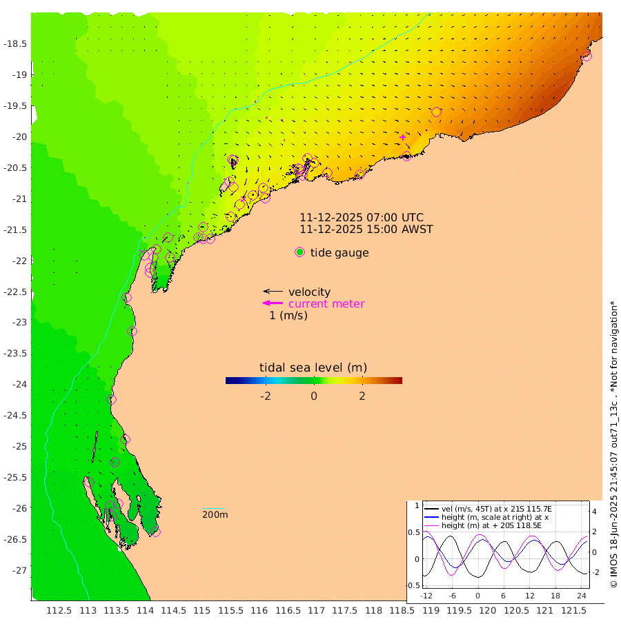 3cm/s -26T +12cm/s rms + 5cm/s -173T. NWSBAR 206m 3cm/s 43T +22cm/s rms + 10cm/s -148T. TAN100 109m 4cm/s 94T +11cm/s rms + 8cm/s -129T. PIL200 208m 6cm/s 99T +13cm/s rms + 7cm/s -137T. PIL100 105m 8cm/s 95T +12cm/s rms + 2cm/s -92T. PIL050 55m 4cm/s 46T +18cm/s rms + 4cm/s -149T. NRSNIN 61m 5cm/s 38T +6cm/s rms + 3cm/s 112T. NW Shelf M6 65m 7cm Withnell Point -8cm Denham -9cm Shark Bay (Inr Bn) -12cm Shark Bay -18cm Useless Loop -15cm Hamelin Pool 27cm Carnarvon 23cm Cape Cuvier 25cm Coral Bay 30cm Norwegian Bay 63cm Badjirrajirra 30cm Tantabiddi 45cm Point Murat 54cm Exmouth 66cm Learmonth 53cm Y Island 40cm North Muiron Island 45cm Roller 53cm Ashburton North 57cm Onslow (Beadon Creek) 53cm Thevenard Island 99cm Large Island 98cm North Sandy Island 77cm Barrow Island (Wapet Landing) 96cm Barrow Island (Tanker Mooring) 109cm Withnell Bay 77cm Trimouille Island 56cm North West Island 119cm Fortescue Road 103cm Steamboat Island 109cm Sholl Island 107cm Fairway Beacon 108cm Mawby Island 109cm Dampier (King Bay) 112cm Cape Legendre 117cm Hauy Island 135cm Port Walcott (Cape Lambert) 143cm Depuch Island 168cm Port Hedland 153cm Bedout Island 229cm Lagrange Bay