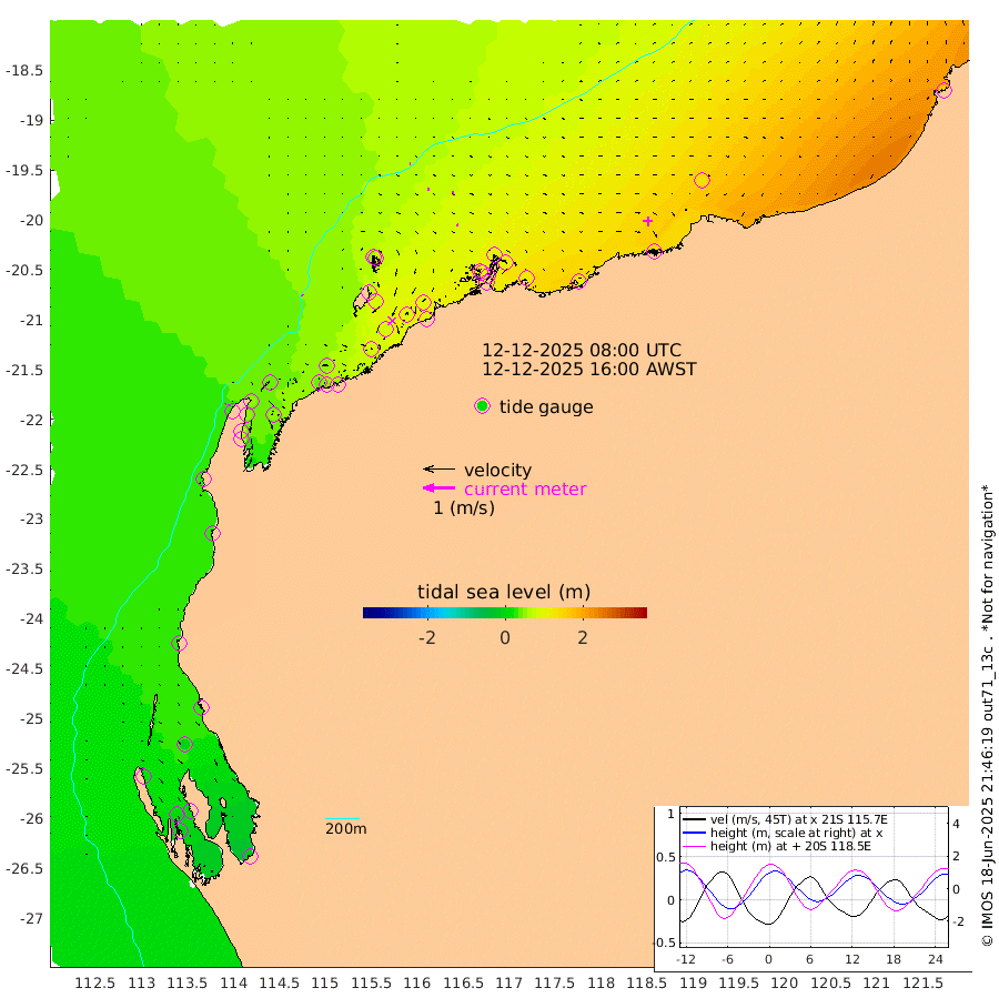 2cm/s -45T +12cm/s rms + 5cm/s -173T. NWSBAR 206m 3cm/s 42T +22cm/s rms + 10cm/s -148T. TAN100 109m 2cm/s 83T +11cm/s rms + 8cm/s -129T. PIL200 208m 4cm/s 88T +13cm/s rms + 7cm/s -137T. PIL100 105m 6cm/s 83T +12cm/s rms + 2cm/s -92T. PIL050 55m 3cm/s 45T +18cm/s rms + 4cm/s -149T. NRSNIN 61m 6cm/s 0T +6cm/s rms + 3cm/s 112T. NW Shelf M6 65m 15cm Withnell Point 4cm Denham 2cm Shark Bay (Inr Bn) 0cm Shark Bay -7cm Useless Loop -14cm Hamelin Pool 33cm Carnarvon 27cm Cape Cuvier 29cm Coral Bay 34cm Norwegian Bay 62cm Badjirrajirra 32cm Tantabiddi 46cm Point Murat 54cm Exmouth 63cm Learmonth 52cm Y Island 41cm North Muiron Island 44cm Roller 52cm Ashburton North 56cm Onslow (Beadon Creek) 52cm Thevenard Island 82cm Large Island 90cm North Sandy Island 72cm Barrow Island (Wapet Landing) 88cm Barrow Island (Tanker Mooring) 97cm Withnell Bay 70cm Trimouille Island 53cm North West Island 99cm Fortescue Road 91cm Steamboat Island 98cm Sholl Island 96cm Fairway Beacon 97cm Mawby Island 97cm Dampier (King Bay) 102cm Cape Legendre 102cm Hauy Island 119cm Port Walcott (Cape Lambert) 123cm Depuch Island 144cm Port Hedland 128cm Bedout Island 163cm Lagrange Bay