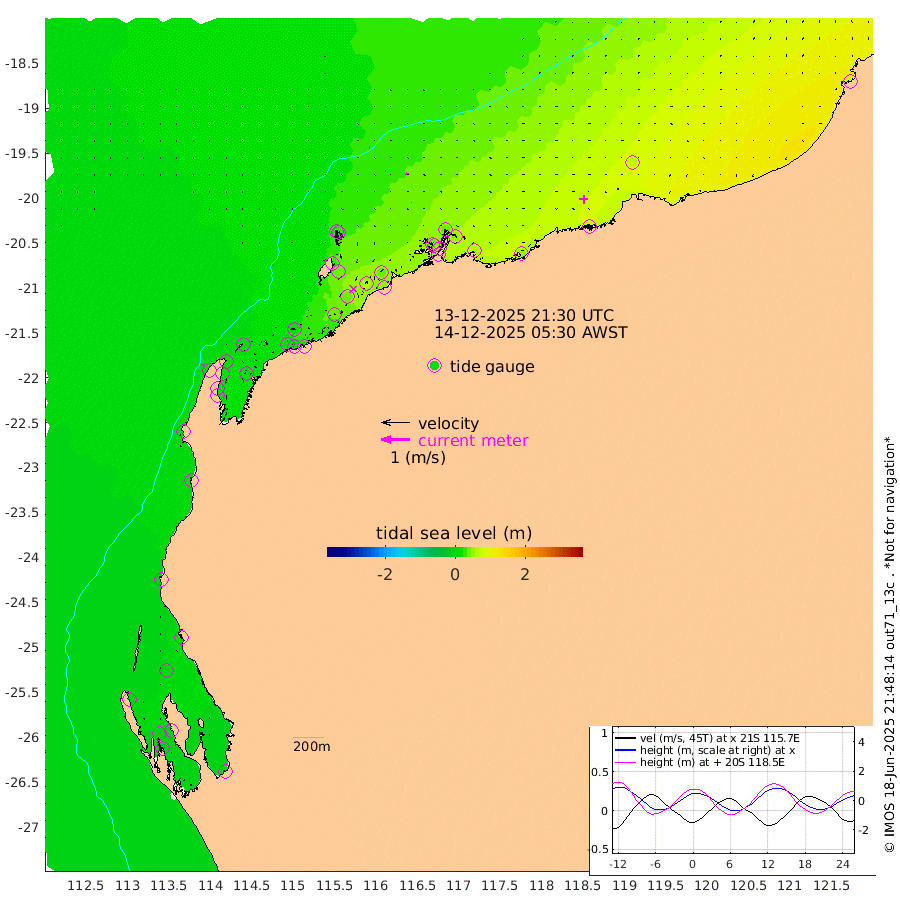 3cm/s -5T +12cm/s rms + 5cm/s -173T. NWSBAR 206m 2cm/s -159T +22cm/s rms + 10cm/s -148T. TAN100 109m 2cm/s 93T +11cm/s rms + 8cm/s -129T. PIL200 208m 2cm/s 106T +13cm/s rms + 7cm/s -137T. PIL100 105m 2cm/s 99T +12cm/s rms + 2cm/s -92T. PIL050 55m 2cm/s -143T +18cm/s rms + 4cm/s -149T. NRSNIN 61m 8cm/s -57T +6cm/s rms + 3cm/s 112T. NW Shelf M6 65m -6cm Withnell Point -9cm Denham -9cm Shark Bay (Inr Bn) -7cm Shark Bay -12cm Useless Loop -5cm Hamelin Pool 1cm Carnarvon -1cm Cape Cuvier 1cm Coral Bay 3cm Norwegian Bay 22cm Badjirrajirra 4cm Tantabiddi 13cm Point Murat 18cm Exmouth 22cm Learmonth 17cm Y Island 9cm North Muiron Island 12cm Roller 16cm Ashburton North 18cm Onslow (Beadon Creek) 17cm Thevenard Island 38cm Large Island 40cm North Sandy Island 30cm Barrow Island (Wapet Landing) 39cm Barrow Island (Tanker Mooring) 46cm Withnell Bay 25cm Trimouille Island 20cm North West Island 48cm Fortescue Road 36cm Steamboat Island 58cm Sholl Island 43cm Fairway Beacon 43cm Mawby Island 46cm Dampier (King Bay) 43cm Cape Legendre 53cm Hauy Island 60cm Port Walcott (Cape Lambert) 54cm Depuch Island 77cm Port Hedland 77cm Bedout Island 71cm Lagrange Bay
