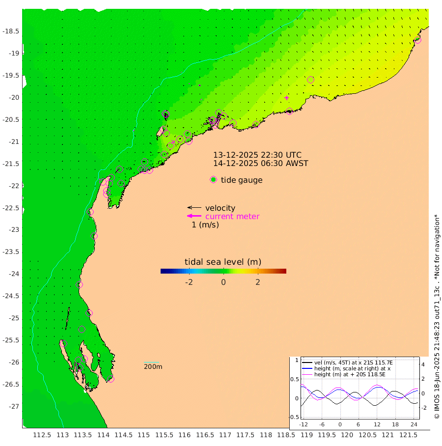 4cm/s -43T +12cm/s rms + 5cm/s -173T. NWSBAR 206m 4cm/s -152T +22cm/s rms + 10cm/s -148T. TAN100 109m 2cm/s -58T +11cm/s rms + 8cm/s -129T. PIL200 208m 3cm/s -40T +13cm/s rms + 7cm/s -137T. PIL100 105m 4cm/s -38T +12cm/s rms + 2cm/s -92T. PIL050 55m 3cm/s -137T +18cm/s rms + 4cm/s -149T. NRSNIN 61m 12cm/s -61T +6cm/s rms + 3cm/s 112T. NW Shelf M6 65m -6cm Withnell Point -8cm Denham -8cm Shark Bay (Inr Bn) -7cm Shark Bay -12cm Useless Loop -6cm Hamelin Pool -1cm Carnarvon -5cm Cape Cuvier -4cm Coral Bay -1cm Norwegian Bay 18cm Badjirrajirra -1cm Tantabiddi 9cm Point Murat 15cm Exmouth 21cm Learmonth 10cm Y Island 3cm North Muiron Island 6cm Roller 10cm Ashburton North 12cm Onslow (Beadon Creek) 11cm Thevenard Island 24cm Large Island 38cm North Sandy Island 24cm Barrow Island (Wapet Landing) 37cm Barrow Island (Tanker Mooring) 37cm Withnell Bay 23cm Trimouille Island 14cm North West Island 32cm Fortescue Road 27cm Steamboat Island 52cm Sholl Island 35cm Fairway Beacon 34cm Mawby Island 37cm Dampier (King Bay) 38cm Cape Legendre 47cm Hauy Island 51cm Port Walcott (Cape Lambert) 46cm Depuch Island 65cm Port Hedland 57cm Bedout Island 29cm Lagrange Bay