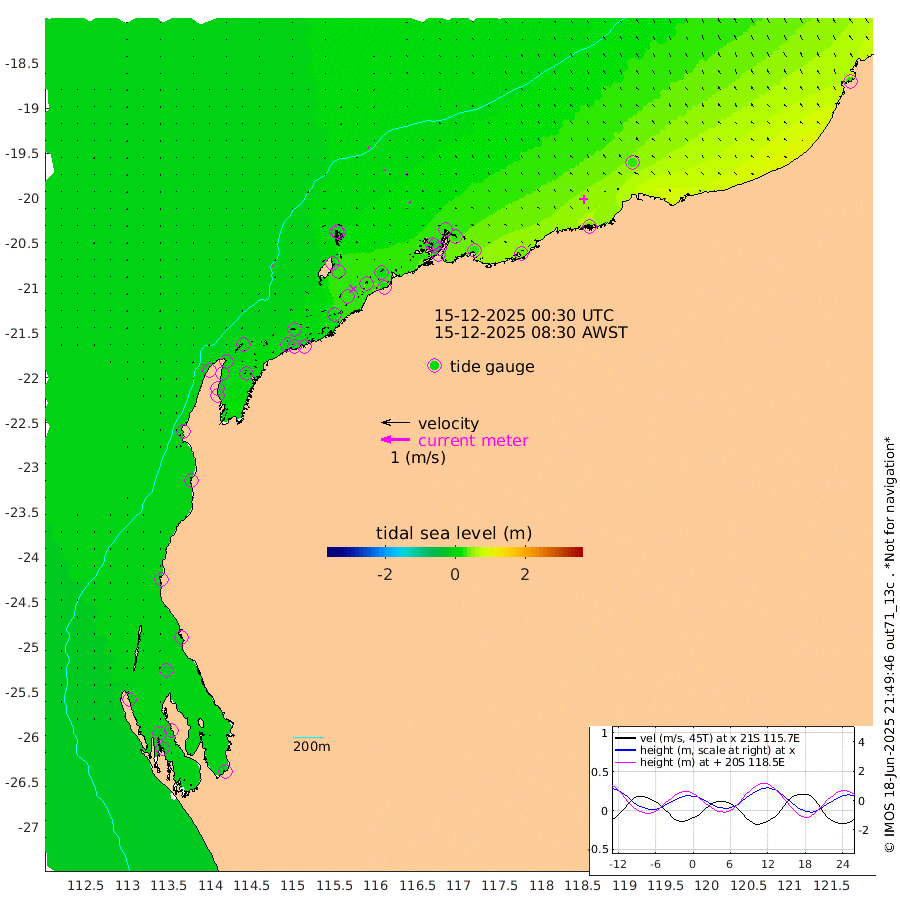 4cm/s -67T +12cm/s rms + 5cm/s -173T. NWSBAR 206m 3cm/s -156T +22cm/s rms + 10cm/s -148T. TAN100 109m 3cm/s -66T +11cm/s rms + 8cm/s -129T. PIL200 208m 5cm/s -43T +13cm/s rms + 7cm/s -137T. PIL100 105m 5cm/s -44T +12cm/s rms + 2cm/s -92T. PIL050 55m 2cm/s -135T +18cm/s rms + 4cm/s -149T. NRSNIN 61m 6cm/s -81T +6cm/s rms + 3cm/s 112T. NW Shelf M6 65m -10cm Withnell Point -16cm Denham -16cm Shark Bay (Inr Bn) -16cm Shark Bay -20cm Useless Loop -7cm Hamelin Pool -7cm Carnarvon -9cm Cape Cuvier -10cm Coral Bay -7cm Norwegian Bay 6cm Badjirrajirra -7cm Tantabiddi 0cm Point Murat 4cm Exmouth 12cm Learmonth -2cm Y Island -6cm North Muiron Island -2cm Roller 0cm Ashburton North 2cm Onslow (Beadon Creek) 1cm Thevenard Island 11cm Large Island 25cm North Sandy Island 12cm Barrow Island (Wapet Landing) 23cm Barrow Island (Tanker Mooring) 21cm Withnell Bay 17cm Trimouille Island 5cm North West Island 16cm Fortescue Road 14cm Steamboat Island 30cm Sholl Island 20cm Fairway Beacon 18cm Mawby Island 22cm Dampier (King Bay) 24cm Cape Legendre 33cm Hauy Island 33cm Port Walcott (Cape Lambert) 34cm Depuch Island 44cm Port Hedland 31cm Bedout Island 31cm Lagrange Bay