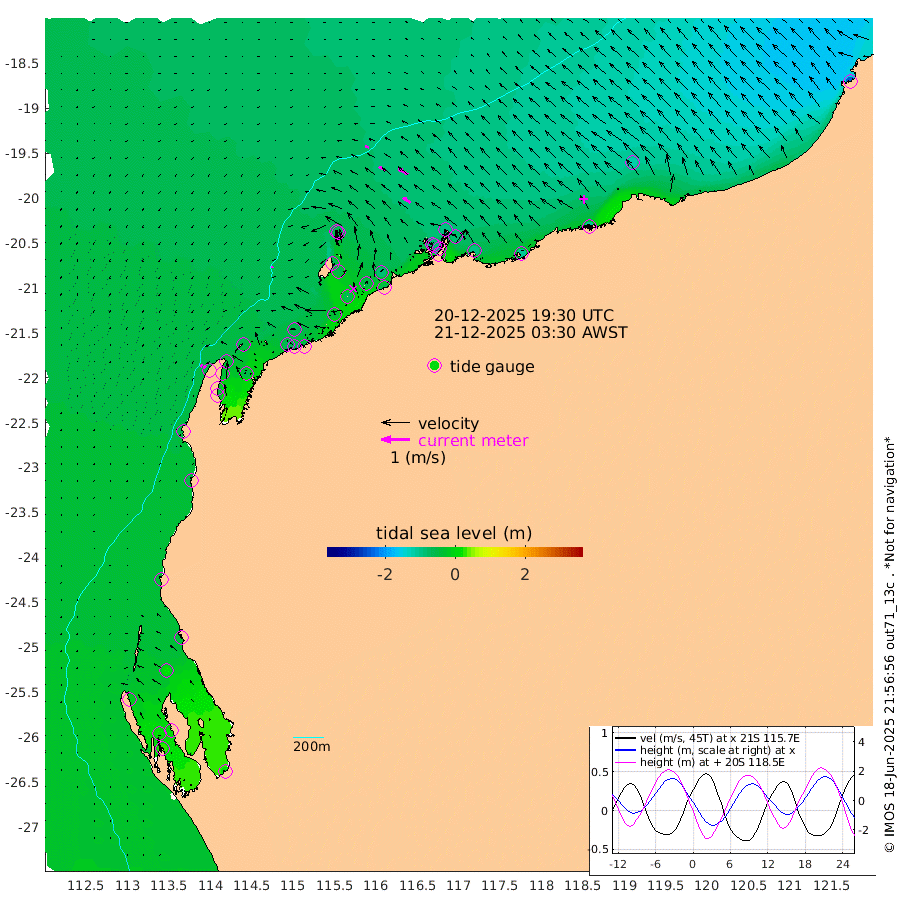 6cm/s -143T +12cm/s rms + 5cm/s -173T. NWSBAR 206m 12cm/s -138T +22cm/s rms + 10cm/s -148T. TAN100 109m 14cm/s -74T +11cm/s rms + 8cm/s -129T. PIL200 208m 26cm/s -56T +13cm/s rms + 7cm/s -137T. PIL100 105m 32cm/s -54T +12cm/s rms + 2cm/s -92T. PIL050 55m 13cm/s -135T +18cm/s rms + 4cm/s -149T. NRSNIN 61m 40cm/s -58T +6cm/s rms + 3cm/s 112T. NW Shelf M6 65m -16cm Withnell Point 13cm Denham 17cm Shark Bay (Inr Bn) 11cm Shark Bay 26cm Useless Loop 22cm Hamelin Pool -38cm Carnarvon -44cm Cape Cuvier -46cm Coral Bay -48cm Norwegian Bay -44cm Badjirrajirra -48cm Tantabiddi -43cm Point Murat -42cm Exmouth -42cm Learmonth -52cm Y Island -50cm North Muiron Island -58cm Roller -57cm Ashburton North -55cm Onslow (Beadon Creek) -58cm Thevenard Island -36cm Large Island -59cm North Sandy Island -61cm Barrow Island (Wapet Landing) -51cm Barrow Island (Tanker Mooring) -88cm Withnell Bay -58cm Trimouille Island -58cm North West Island -49cm Fortescue Road -86cm Steamboat Island -53cm Sholl Island -85cm Fairway Beacon -89cm Mawby Island -87cm Dampier (King Bay) -94cm Cape Legendre -82cm Hauy Island -94cm Port Walcott (Cape Lambert) -110cm Depuch Island -112cm Port Hedland -115cm Bedout Island -244cm Lagrange Bay
