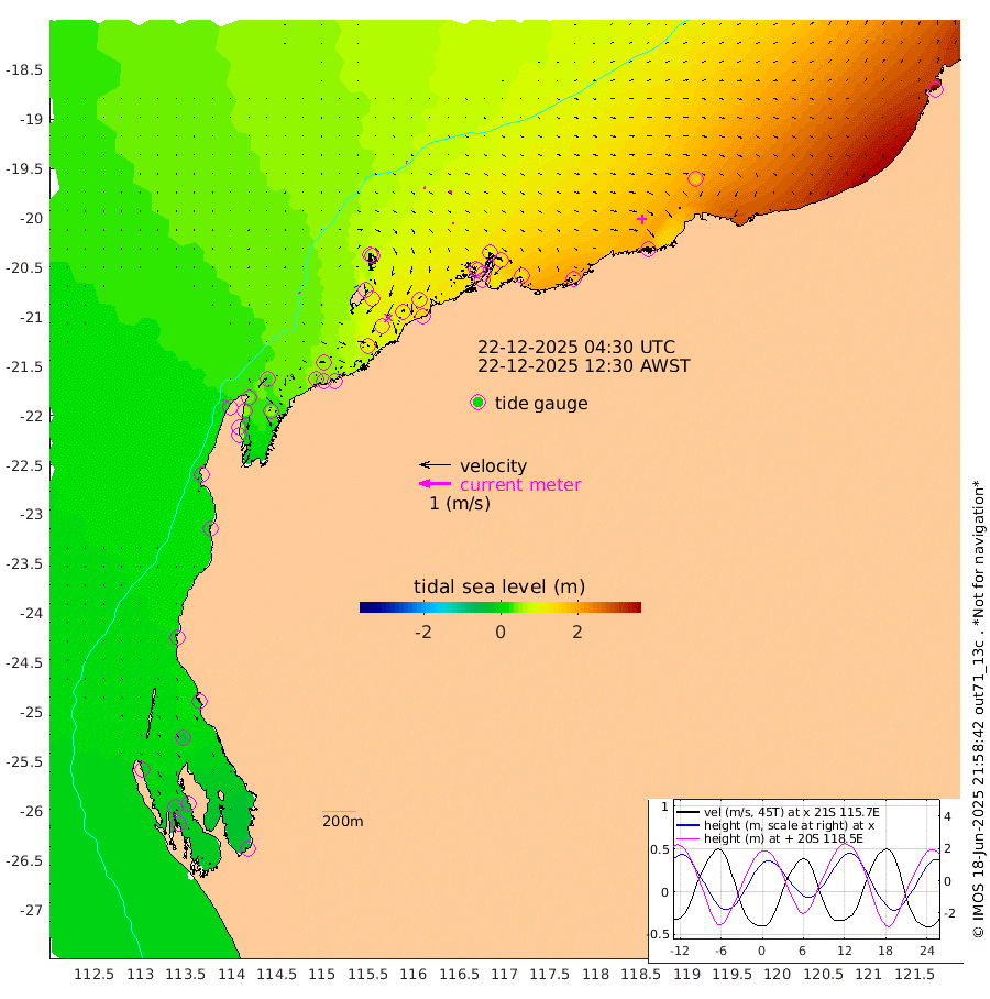 4cm/s -45T +12cm/s rms + 5cm/s -173T. NWSBAR 206m 4cm/s 43T +22cm/s rms + 10cm/s -148T. TAN100 109m 3cm/s 98T +11cm/s rms + 8cm/s -129T. PIL200 208m 5cm/s 98T +13cm/s rms + 7cm/s -137T. PIL100 105m 6cm/s 93T +12cm/s rms + 2cm/s -92T. PIL050 55m 4cm/s 42T +18cm/s rms + 4cm/s -149T. NRSNIN 61m 9cm/s 83T +6cm/s rms + 3cm/s 112T. NW Shelf M6 65m -5cm Withnell Point -26cm Denham -28cm Shark Bay (Inr Bn) -29cm Shark Bay -39cm Useless Loop -19cm Hamelin Pool 16cm Carnarvon 12cm Cape Cuvier 14cm Coral Bay 18cm Norwegian Bay 54cm Badjirrajirra 21cm Tantabiddi 36cm Point Murat 46cm Exmouth 62cm Learmonth 45cm Y Island 31cm North Muiron Island 42cm Roller 46cm Ashburton North 50cm Onslow (Beadon Creek) 47cm Thevenard Island 119cm Large Island 108cm North Sandy Island 73cm Barrow Island (Wapet Landing) 99cm Barrow Island (Tanker Mooring) 111cm Withnell Bay 72cm Trimouille Island 54cm North West Island 148cm Fortescue Road 103cm Steamboat Island 105cm Sholl Island 111cm Fairway Beacon 114cm Mawby Island 113cm Dampier (King Bay) 110cm Cape Legendre 127cm Hauy Island 144cm Port Walcott (Cape Lambert) 170cm Depuch Island 184cm Port Hedland 165cm Bedout Island 353cm Lagrange Bay