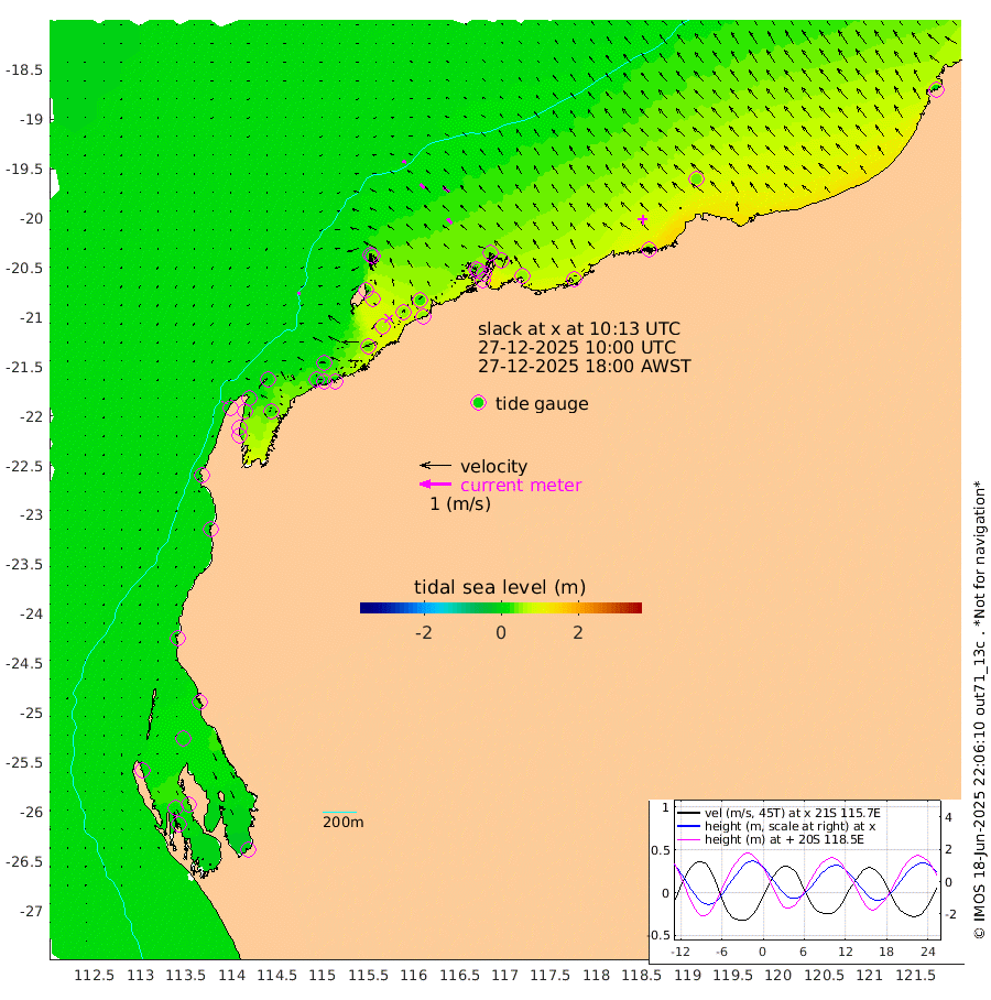 8cm/s -105T +12cm/s rms + 5cm/s -173T. NWSBAR 206m 4cm/s -137T +22cm/s rms + 10cm/s -148T. TAN100 109m 13cm/s -72T +11cm/s rms + 8cm/s -129T. PIL200 208m 18cm/s -50T +13cm/s rms + 7cm/s -137T. PIL100 105m 21cm/s -43T +12cm/s rms + 2cm/s -92T. PIL050 55m 4cm/s -126T +18cm/s rms + 4cm/s -149T. NRSNIN 61m 25cm/s -51T +6cm/s rms + 3cm/s 112T. NW Shelf M6 65m 20cm Withnell Point 25cm Denham 21cm Shark Bay (Inr Bn) 22cm Shark Bay 17cm Useless Loop -8cm Hamelin Pool 23cm Carnarvon 7cm Cape Cuvier 6cm Coral Bay 10cm Norwegian Bay 37cm Badjirrajirra 8cm Tantabiddi 24cm Point Murat 32cm Exmouth 33cm Learmonth 25cm Y Island 14cm North Muiron Island 17cm Roller 18cm Ashburton North 22cm Onslow (Beadon Creek) 19cm Thevenard Island 38cm Large Island 59cm North Sandy Island 33cm Barrow Island (Wapet Landing) 59cm Barrow Island (Tanker Mooring) 35cm Withnell Bay 34cm Trimouille Island 15cm North West Island 48cm Fortescue Road 32cm Steamboat Island 49cm Sholl Island 35cm Fairway Beacon 31cm Mawby Island 34cm Dampier (King Bay) 36cm Cape Legendre 46cm Hauy Island 48cm Port Walcott (Cape Lambert) 59cm Depuch Island 54cm Port Hedland 36cm Bedout Island 5cm Lagrange Bay