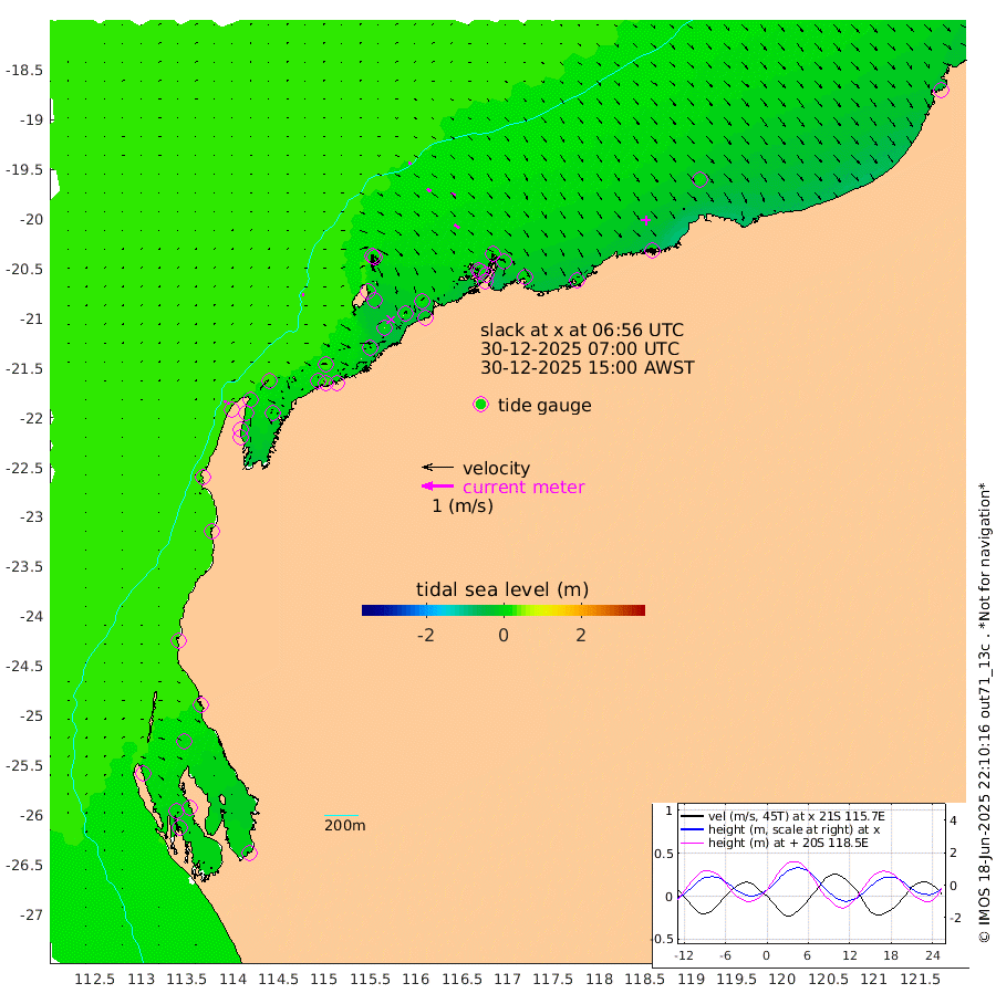5cm/s 89T +12cm/s rms + 5cm/s -173T. NWSBAR 206m 7cm/s 38T +22cm/s rms + 10cm/s -148T. TAN100 109m 9cm/s 104T +11cm/s rms + 8cm/s -129T. PIL200 208m 16cm/s 123T +13cm/s rms + 7cm/s -137T. PIL100 105m 18cm/s 127T +12cm/s rms + 2cm/s -92T. PIL050 55m 7cm/s 48T +18cm/s rms + 4cm/s -149T. NRSNIN 61m 13cm/s 125T +6cm/s rms + 3cm/s 112T. NW Shelf M6 65m 15cm Withnell Point 4cm Denham 5cm Shark Bay (Inr Bn) 2cm Shark Bay 1cm Useless Loop -7cm Hamelin Pool 23cm Carnarvon 30cm Cape Cuvier 31cm Coral Bay 30cm Norwegian Bay 13cm Badjirrajirra 28cm Tantabiddi 19cm Point Murat 15cm Exmouth 14cm Learmonth 19cm Y Island 26cm North Muiron Island 22cm Roller 24cm Ashburton North 21cm Onslow (Beadon Creek) 23cm Thevenard Island 1cm Large Island -1cm North Sandy Island 15cm Barrow Island (Wapet Landing) -4cm Barrow Island (Tanker Mooring) 15cm Withnell Bay 19cm Trimouille Island 20cm North West Island -16cm Fortescue Road 18cm Steamboat Island 7cm Sholl Island 13cm Fairway Beacon 16cm Mawby Island 14cm Dampier (King Bay) 18cm Cape Legendre 0cm Hauy Island 5cm Port Walcott (Cape Lambert) -3cm Depuch Island 0cm Port Hedland 0cm Bedout Island -38cm Lagrange Bay