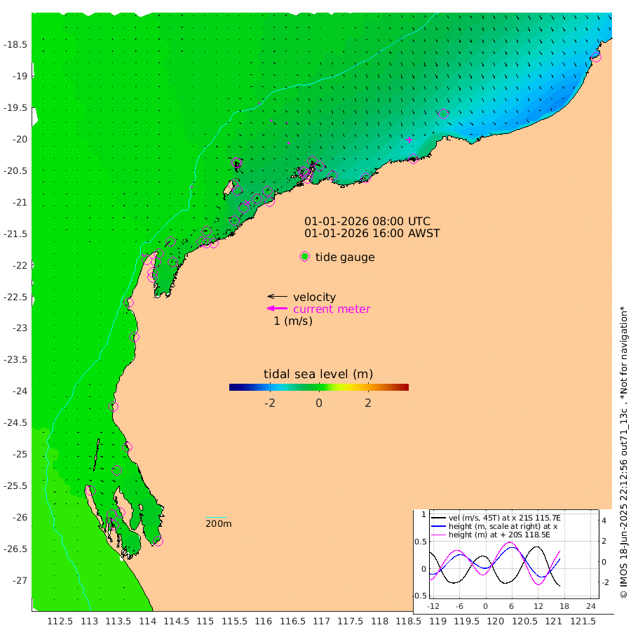 5cm/s 111T +12cm/s rms + 5cm/s -173T. NWSBAR 206m 6cm/s 37T +22cm/s rms + 10cm/s -148T. TAN100 109m 5cm/s 99T +11cm/s rms + 8cm/s -129T. PIL200 208m 9cm/s 128T +13cm/s rms + 7cm/s -137T. PIL100 105m 11cm/s 136T +12cm/s rms + 2cm/s -92T. PIL050 55m 6cm/s 48T +18cm/s rms + 4cm/s -149T. NRSNIN 61m 6cm/s 144T +6cm/s rms + 3cm/s 112T. NW Shelf M6 65m 15cm Withnell Point 8cm Denham 8cm Shark Bay (Inr Bn) 8cm Shark Bay 5cm Useless Loop -7cm Hamelin Pool 17cm Carnarvon 25cm Cape Cuvier 23cm Coral Bay 21cm Norwegian Bay -11cm Badjirrajirra 18cm Tantabiddi 2cm Point Murat -6cm Exmouth -12cm Learmonth -2cm Y Island 10cm North Muiron Island 3cm Roller 1cm Ashburton North -4cm Onslow (Beadon Creek) 0cm Thevenard Island -38cm Large Island -41cm North Sandy Island -20cm Barrow Island (Wapet Landing) -44cm Barrow Island (Tanker Mooring) -40cm Withnell Bay -18cm Trimouille Island -6cm North West Island -63cm Fortescue Road -34cm Steamboat Island -40cm Sholl Island -40cm Fairway Beacon -37cm Mawby Island -40cm Dampier (King Bay) -38cm Cape Legendre -58cm Hauy Island -63cm Port Walcott (Cape Lambert) -77cm Depuch Island -87cm Port Hedland -90cm Bedout Island -175cm Lagrange Bay