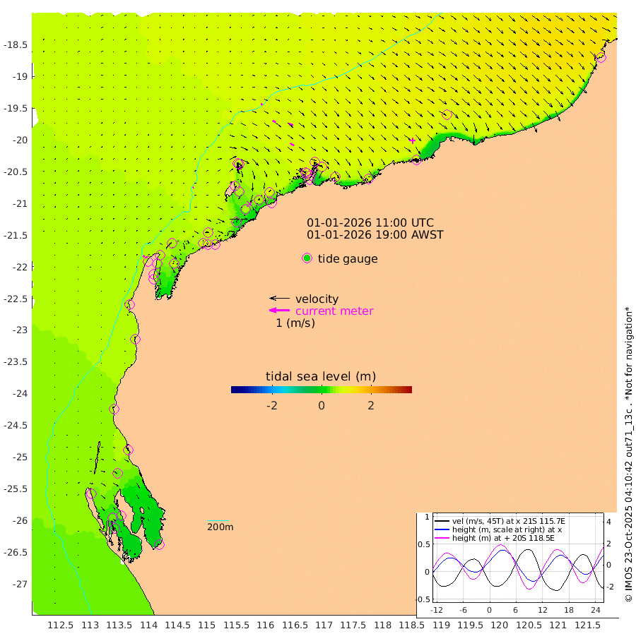 4cm/s 58T +12cm/s rms + 5cm/s -173T. NWSBAR 206m 8cm/s 41T +22cm/s rms + 10cm/s -148T. TAN100 109m 10cm/s 105T +11cm/s rms + 8cm/s -129T. PIL200 208m 18cm/s 119T +13cm/s rms + 7cm/s -137T. PIL100 105m 23cm/s 121T +12cm/s rms + 2cm/s -92T. PIL050 55m 8cm/s 45T +18cm/s rms + 4cm/s -149T. NRSNIN 61m 24cm/s 118T +6cm/s rms + 3cm/s 112T. NW Shelf M6 65m 47cm Withnell Point 37cm Denham 34cm Shark Bay (Inr Bn) 40cm Shark Bay 31cm Useless Loop -11cm Hamelin Pool 61cm Carnarvon 59cm Cape Cuvier 61cm Coral Bay 62cm Norwegian Bay 68cm Badjirrajirra 61cm Tantabiddi 63cm Point Murat 65cm Exmouth 62cm Learmonth 69cm Y Island 64cm North Muiron Island 68cm Roller 70cm Ashburton North 71cm Onslow (Beadon Creek) 72cm Thevenard Island 20cm Large Island 67cm North Sandy Island 75cm Barrow Island (Wapet Landing) 67cm Barrow Island (Tanker Mooring) 93cm Withnell Bay 67cm Trimouille Island 70cm North West Island 23cm Fortescue Road 90cm Steamboat Island 67cm Sholl Island 90cm Fairway Beacon 93cm Mawby Island 92cm Dampier (King Bay) 105cm Cape Legendre 81cm Hauy Island 96cm Port Walcott (Cape Lambert) 88cm Depuch Island 107cm Port Hedland 108cm Bedout Island 91cm Lagrange Bay