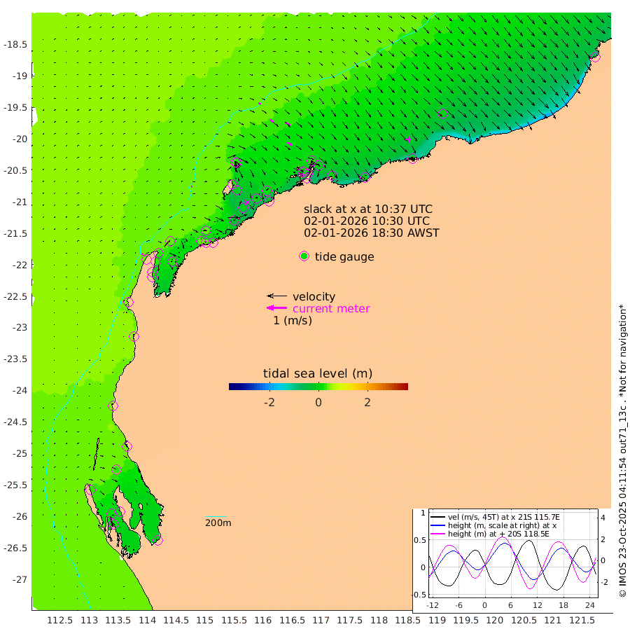 7cm/s 78T +12cm/s rms + 5cm/s -173T. NWSBAR 206m 9cm/s 40T +22cm/s rms + 10cm/s -148T. TAN100 109m 12cm/s 106T +11cm/s rms + 8cm/s -129T. PIL200 208m 22cm/s 125T +13cm/s rms + 7cm/s -137T. PIL100 105m 27cm/s 128T +12cm/s rms + 2cm/s -92T. PIL050 55m 9cm/s 47T +18cm/s rms + 4cm/s -149T. NRSNIN 61m 26cm/s 127T +6cm/s rms + 3cm/s 112T. NW Shelf M6 65m 33cm Withnell Point 22cm Denham 21cm Shark Bay (Inr Bn) 26cm Shark Bay 19cm Useless Loop -8cm Hamelin Pool 42cm Carnarvon 48cm Cape Cuvier 49cm Coral Bay 48cm Norwegian Bay 23cm Badjirrajirra 45cm Tantabiddi 32cm Point Murat 26cm Exmouth 18cm Learmonth 33cm Y Island 40cm North Muiron Island 38cm Roller 38cm Ashburton North 33cm Onslow (Beadon Creek) 38cm Thevenard Island -31cm Large Island -3cm North Sandy Island 23cm Barrow Island (Wapet Landing) -5cm Barrow Island (Tanker Mooring) 19cm Withnell Bay 16cm Trimouille Island 31cm North West Island -43cm Fortescue Road 17cm Steamboat Island -2cm Sholl Island 17cm Fairway Beacon 21cm Mawby Island 19cm Dampier (King Bay) 28cm Cape Legendre -3cm Hauy Island 3cm Port Walcott (Cape Lambert) -17cm Depuch Island -10cm Port Hedland -1cm Bedout Island -52cm Lagrange Bay