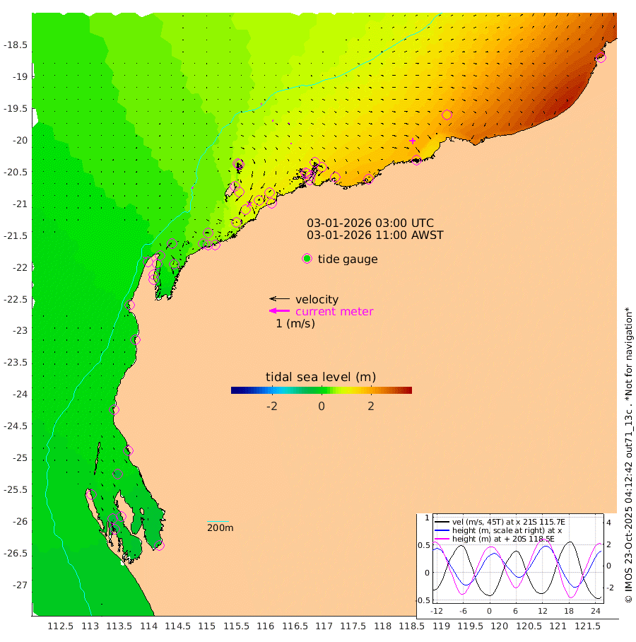 5cm/s -43T +12cm/s rms + 5cm/s -173T. NWSBAR 206m 3cm/s 50T +22cm/s rms + 10cm/s -148T. TAN100 109m 3cm/s 105T +11cm/s rms + 8cm/s -129T. PIL200 208m 4cm/s 96T +13cm/s rms + 7cm/s -137T. PIL100 105m 5cm/s 93T +12cm/s rms + 2cm/s -92T. PIL050 55m 4cm/s 42T +18cm/s rms + 4cm/s -149T. NRSNIN 61m 7cm/s 107T +6cm/s rms + 3cm/s 112T. NW Shelf M6 65m -10cm Withnell Point -33cm Denham -34cm Shark Bay (Inr Bn) -35cm Shark Bay -47cm Useless Loop -20cm Hamelin Pool 10cm Carnarvon 7cm Cape Cuvier 8cm Coral Bay 13cm Norwegian Bay 48cm Badjirrajirra 15cm Tantabiddi 31cm Point Murat 39cm Exmouth 54cm Learmonth 36cm Y Island 24cm North Muiron Island 34cm Roller 39cm Ashburton North 44cm Onslow (Beadon Creek) 41cm Thevenard Island 92cm Large Island 99cm North Sandy Island 67cm Barrow Island (Wapet Landing) 92cm Barrow Island (Tanker Mooring) 105cm Withnell Bay 72cm Trimouille Island 46cm North West Island 117cm Fortescue Road 97cm Steamboat Island 100cm Sholl Island 104cm Fairway Beacon 105cm Mawby Island 107cm Dampier (King Bay) 110cm Cape Legendre 124cm Hauy Island 138cm Port Walcott (Cape Lambert) 158cm Depuch Island 176cm Port Hedland 163cm Bedout Island 297cm Lagrange Bay