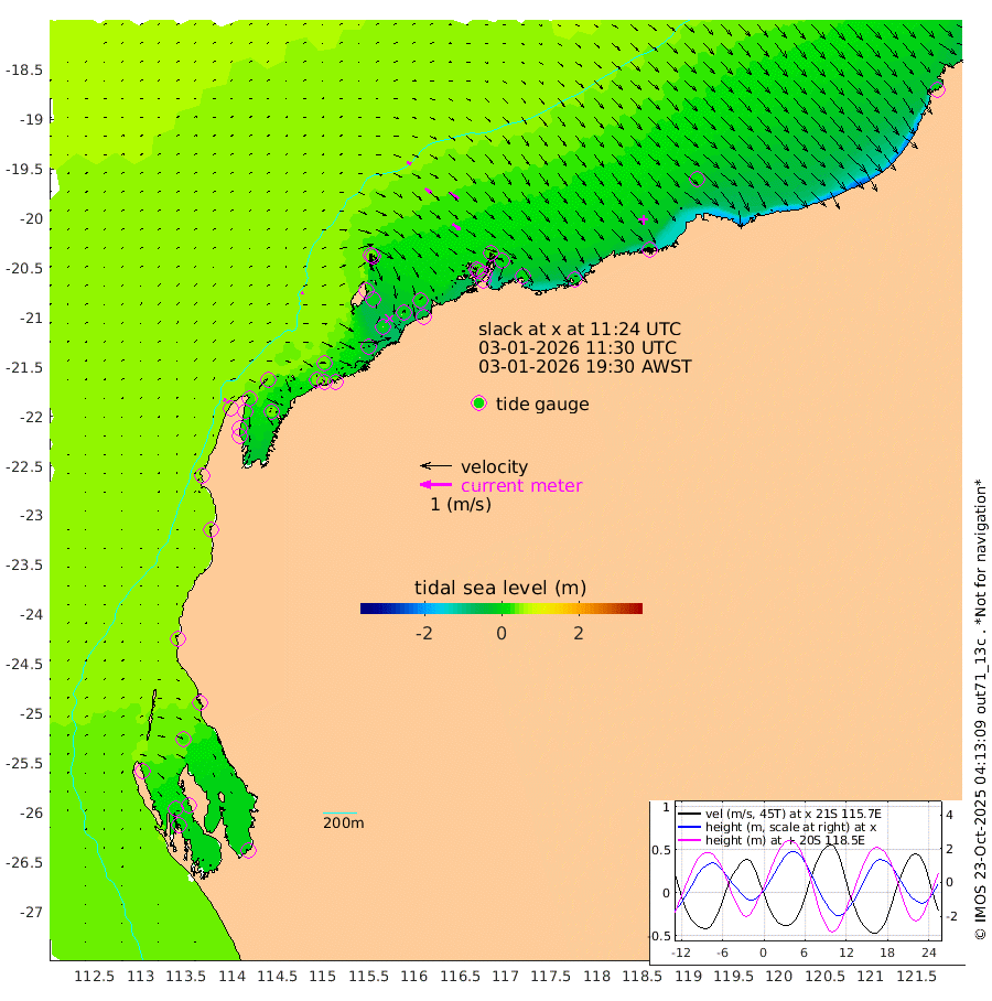 8cm/s 75T +12cm/s rms + 5cm/s -173T. NWSBAR 206m 10cm/s 40T +22cm/s rms + 10cm/s -148T. TAN100 109m 14cm/s 108T +11cm/s rms + 8cm/s -129T. PIL200 208m 26cm/s 126T +13cm/s rms + 7cm/s -137T. PIL100 105m 32cm/s 129T +12cm/s rms + 2cm/s -92T. PIL050 55m 10cm/s 47T +18cm/s rms + 4cm/s -149T. NRSNIN 61m 34cm/s 127T +6cm/s rms + 3cm/s 112T. NW Shelf M6 65m 33cm Withnell Point 21cm Denham 19cm Shark Bay (Inr Bn) 27cm Shark Bay 19cm Useless Loop -7cm Hamelin Pool 42cm Carnarvon 50cm Cape Cuvier 51cm Coral Bay 49cm Norwegian Bay 23cm Badjirrajirra 47cm Tantabiddi 33cm Point Murat 26cm Exmouth 17cm Learmonth 35cm Y Island 42cm North Muiron Island 42cm Roller 40cm Ashburton North 35cm Onslow (Beadon Creek) 41cm Thevenard Island -27cm Large Island -3cm North Sandy Island 25cm Barrow Island (Wapet Landing) -5cm Barrow Island (Tanker Mooring) 24cm Withnell Bay 16cm Trimouille Island 34cm North West Island -34cm Fortescue Road 19cm Steamboat Island -6cm Sholl Island 22cm Fairway Beacon 26cm Mawby Island 24cm Dampier (King Bay) 33cm Cape Legendre 0cm Hauy Island 7cm Port Walcott (Cape Lambert) -13cm Depuch Island -3cm Port Hedland 12cm Bedout Island 3cm Lagrange Bay