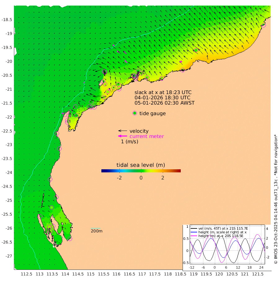 10cm/s -115T +12cm/s rms + 5cm/s -173T. NWSBAR 206m 13cm/s -137T +22cm/s rms + 10cm/s -148T. TAN100 109m 18cm/s -72T +11cm/s rms + 8cm/s -129T. PIL200 208m 33cm/s -52T +13cm/s rms + 7cm/s -137T. PIL100 105m 39cm/s -47T +12cm/s rms + 2cm/s -92T. PIL050 55m 14cm/s -132T +18cm/s rms + 4cm/s -149T. NRSNIN 61m 45cm/s -47T +6cm/s rms + 3cm/s 112T. NW Shelf M6 65m 19cm Withnell Point 45cm Denham 45cm Shark Bay (Inr Bn) 43cm Shark Bay 48cm Useless Loop 11cm Hamelin Pool 5cm Carnarvon -16cm Cape Cuvier -16cm Coral Bay -16cm Norwegian Bay 29cm Badjirrajirra -12cm Tantabiddi 11cm Point Murat 23cm Exmouth 29cm Learmonth 10cm Y Island -3cm North Muiron Island -2cm Roller -1cm Ashburton North 7cm Onslow (Beadon Creek) 0cm Thevenard Island 50cm Large Island 51cm North Sandy Island 20cm Barrow Island (Wapet Landing) 59cm Barrow Island (Tanker Mooring) 19cm Withnell Bay 16cm Trimouille Island 11cm North West Island 47cm Fortescue Road 29cm Steamboat Island 46cm Sholl Island 21cm Fairway Beacon 19cm Mawby Island 19cm Dampier (King Bay) 13cm Cape Legendre 40cm Hauy Island 38cm Port Walcott (Cape Lambert) 53cm Depuch Island 48cm Port Hedland 25cm Bedout Island -43cm Lagrange Bay