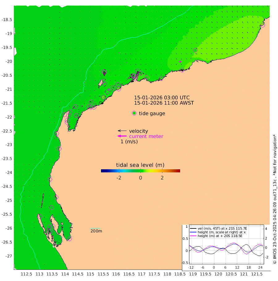 2cm/s -95T +12cm/s rms + 5cm/s -173T. NWSBAR 206m 1cm/s 52T +22cm/s rms + 10cm/s -148T. TAN100 109m 2cm/s -81T +11cm/s rms + 8cm/s -129T. PIL200 208m 3cm/s -49T +13cm/s rms + 7cm/s -137T. PIL100 105m 3cm/s -46T +12cm/s rms + 2cm/s -92T. PIL050 55m 1cm/s 30T +18cm/s rms + 4cm/s -149T. NRSNIN 61m 2cm/s -83T +6cm/s rms + 3cm/s 112T. NW Shelf M6 65m -8cm Withnell Point -19cm Denham -21cm Shark Bay (Inr Bn) -21cm Shark Bay -27cm Useless Loop -13cm Hamelin Pool -2cm Carnarvon -2cm Cape Cuvier -3cm Coral Bay -3cm Norwegian Bay 1cm Badjirrajirra -2cm Tantabiddi 0cm Point Murat 0cm Exmouth 7cm Learmonth -5cm Y Island -3cm North Muiron Island -4cm Roller 0cm Ashburton North 1cm Onslow (Beadon Creek) 0cm Thevenard Island 39cm Large Island 14cm North Sandy Island 5cm Barrow Island (Wapet Landing) 12cm Barrow Island (Tanker Mooring) 9cm Withnell Bay 14cm Trimouille Island 4cm North West Island 39cm Fortescue Road 11cm Steamboat Island 8cm Sholl Island 9cm Fairway Beacon 8cm Mawby Island 10cm Dampier (King Bay) 11cm Cape Legendre 17cm Hauy Island 16cm Port Walcott (Cape Lambert) 25cm Depuch Island 20cm Port Hedland 6cm Bedout Island 68cm Lagrange Bay