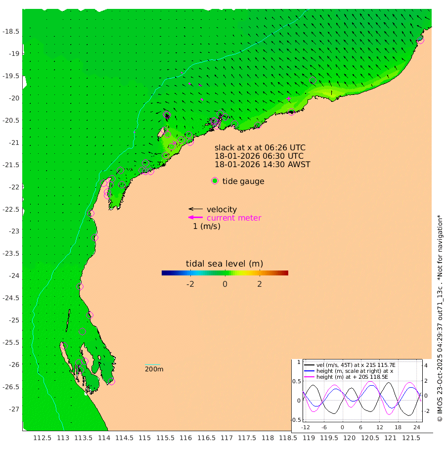 6cm/s -137T +12cm/s rms + 5cm/s -173T. NWSBAR 206m 2cm/s -131T +22cm/s rms + 10cm/s -148T. TAN100 109m 10cm/s -74T +11cm/s rms + 8cm/s -129T. PIL200 208m 15cm/s -53T +13cm/s rms + 7cm/s -137T. PIL100 105m 19cm/s -49T +12cm/s rms + 2cm/s -92T. PIL050 55m 2cm/s -110T +18cm/s rms + 4cm/s -149T. NRSNIN 61m 24cm/s -53T +6cm/s rms + 3cm/s 112T. NW Shelf M6 65m 6cm Withnell Point 4cm Denham 0cm Shark Bay (Inr Bn) 0cm Shark Bay -6cm Useless Loop -13cm Hamelin Pool 11cm Carnarvon 4cm Cape Cuvier 2cm Coral Bay 2cm Norwegian Bay 14cm Badjirrajirra 2cm Tantabiddi 9cm Point Murat 11cm Exmouth 15cm Learmonth 1cm Y Island 2cm North Muiron Island -2cm Roller 2cm Ashburton North 4cm Onslow (Beadon Creek) 1cm Thevenard Island 25cm Large Island 24cm North Sandy Island 7cm Barrow Island (Wapet Landing) 23cm Barrow Island (Tanker Mooring) 0cm Withnell Bay 12cm Trimouille Island 5cm North West Island 12cm Fortescue Road 13cm Steamboat Island 23cm Sholl Island 2cm Fairway Beacon 0cm Mawby Island 1cm Dampier (King Bay) -2cm Cape Legendre 9cm Hauy Island 5cm Port Walcott (Cape Lambert) 11cm Depuch Island 2cm Port Hedland -21cm Bedout Island -111cm Lagrange Bay