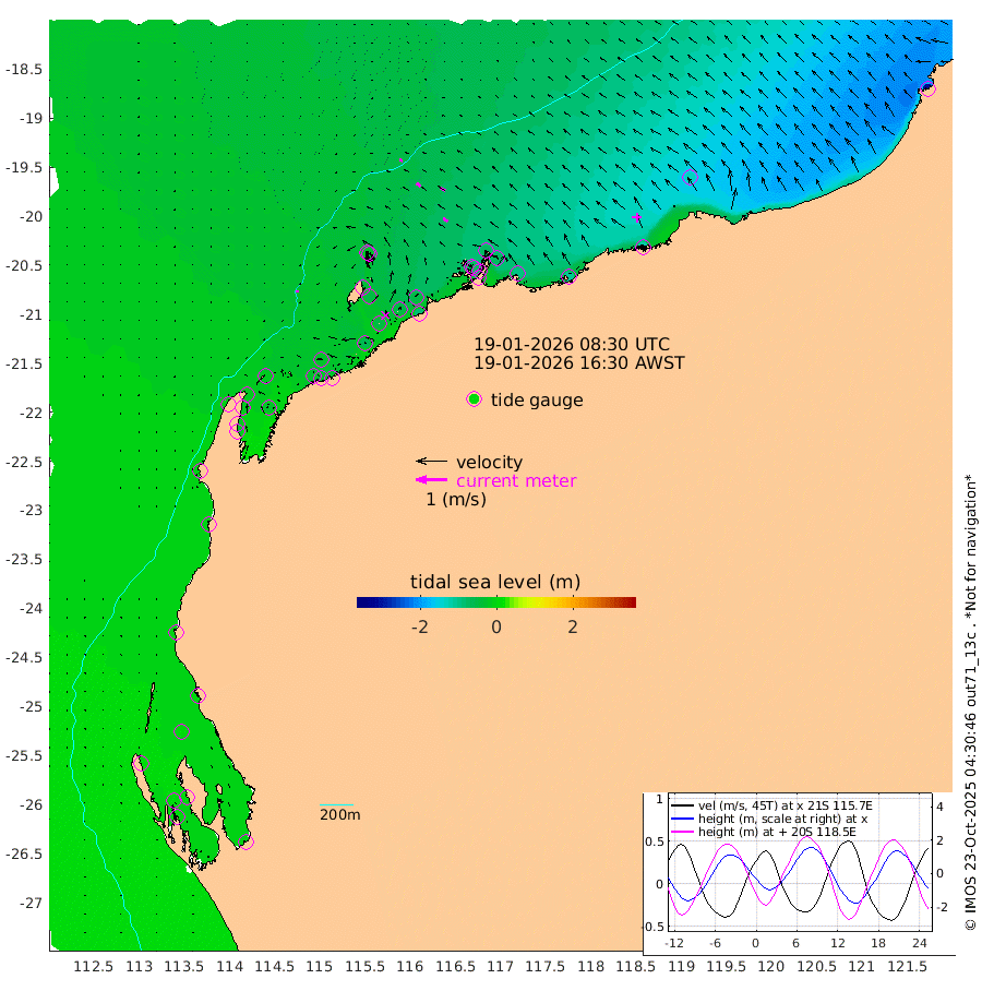 5cm/s -160T +12cm/s rms + 5cm/s -173T. NWSBAR 206m 2cm/s -134T +22cm/s rms + 10cm/s -148T. TAN100 109m 10cm/s -72T +11cm/s rms + 8cm/s -129T. PIL200 208m 15cm/s -56T +13cm/s rms + 7cm/s -137T. PIL100 105m 18cm/s -57T +12cm/s rms + 2cm/s -92T. PIL050 55m 2cm/s -123T +18cm/s rms + 4cm/s -149T. NRSNIN 61m 19cm/s -62T +6cm/s rms + 3cm/s 112T. NW Shelf M6 65m 5cm Withnell Point 10cm Denham 5cm Shark Bay (Inr Bn) 7cm Shark Bay 6cm Useless Loop -5cm Hamelin Pool 1cm Carnarvon -1cm Cape Cuvier -5cm Coral Bay -6cm Norwegian Bay -23cm Badjirrajirra -10cm Tantabiddi -15cm Point Murat -20cm Exmouth -27cm Learmonth -26cm Y Island -17cm North Muiron Island -26cm Roller -26cm Ashburton North -28cm Onslow (Beadon Creek) -28cm Thevenard Island -62cm Large Island -47cm North Sandy Island -41cm Barrow Island (Wapet Landing) -46cm Barrow Island (Tanker Mooring) -73cm Withnell Bay -39cm Trimouille Island -31cm North West Island -87cm Fortescue Road -56cm Steamboat Island -48cm Sholl Island -70cm Fairway Beacon -71cm Mawby Island -72cm Dampier (King Bay) -71cm Cape Legendre -75cm Hauy Island -91cm Port Walcott (Cape Lambert) -104cm Depuch Island -121cm Port Hedland -134cm Bedout Island -309cm Lagrange Bay