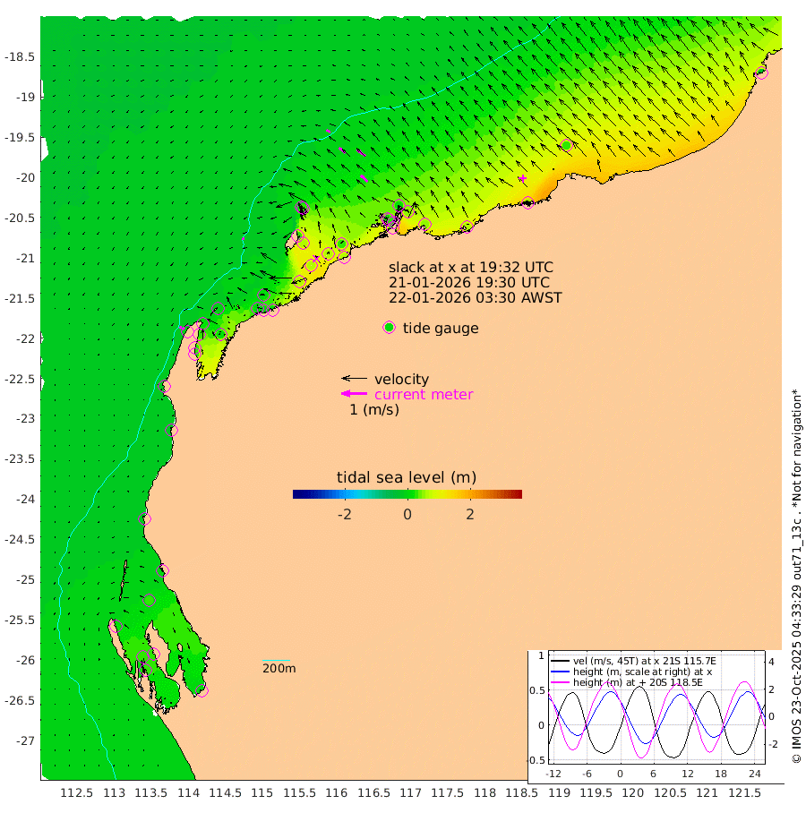 10cm/s -105T +12cm/s rms + 5cm/s -173T. NWSBAR 206m 12cm/s -139T +22cm/s rms + 10cm/s -148T. TAN100 109m 17cm/s -70T +11cm/s rms + 8cm/s -129T. PIL200 208m 30cm/s -52T +13cm/s rms + 7cm/s -137T. PIL100 105m 36cm/s -47T +12cm/s rms + 2cm/s -92T. PIL050 55m 12cm/s -133T +18cm/s rms + 4cm/s -149T. NRSNIN 61m 42cm/s -51T +6cm/s rms + 3cm/s 112T. NW Shelf M6 65m 13cm Withnell Point 32cm Denham 31cm Shark Bay (Inr Bn) 30cm Shark Bay 30cm Useless Loop 3cm Hamelin Pool 4cm Carnarvon -15cm Cape Cuvier -15cm Coral Bay -14cm Norwegian Bay 30cm Badjirrajirra -11cm Tantabiddi 12cm Point Murat 24cm Exmouth 32cm Learmonth 12cm Y Island -1cm North Muiron Island 2cm Roller 2cm Ashburton North 8cm Onslow (Beadon Creek) 3cm Thevenard Island 64cm Large Island 59cm North Sandy Island 24cm Barrow Island (Wapet Landing) 63cm Barrow Island (Tanker Mooring) 25cm Withnell Bay 24cm Trimouille Island 13cm North West Island 62cm Fortescue Road 31cm Steamboat Island 61cm Sholl Island 26cm Fairway Beacon 22cm Mawby Island 25cm Dampier (King Bay) 14cm Cape Legendre 48cm Hauy Island 46cm Port Walcott (Cape Lambert) 61cm Depuch Island 57cm Port Hedland 31cm Bedout Island -13cm Lagrange Bay